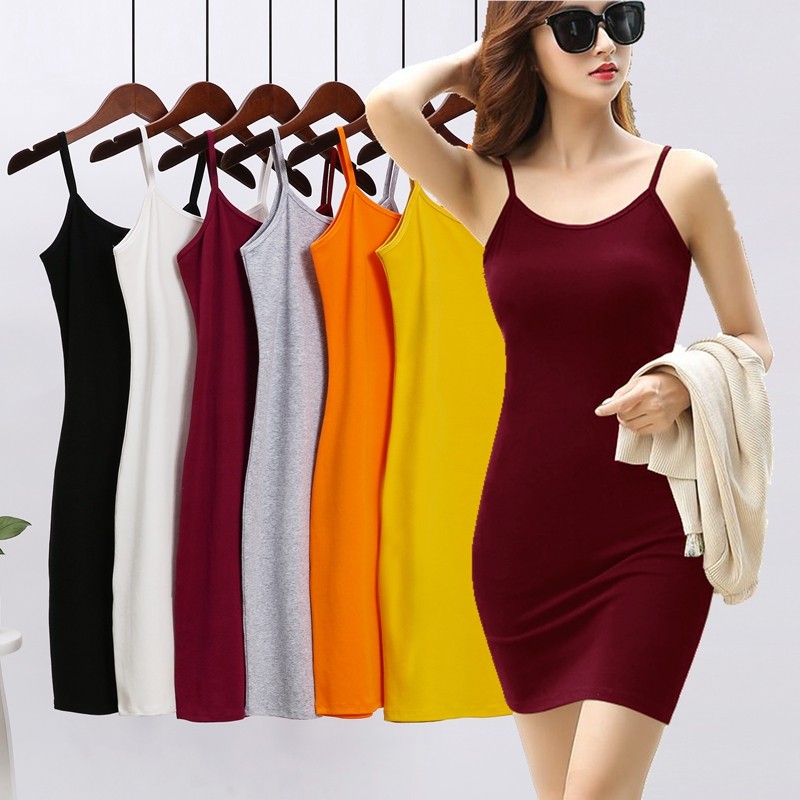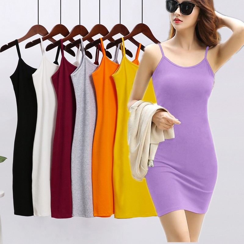 夏季新款黑色内搭细吊带背心裙女中长款包臀显瘦百搭紫色吊带裙潮