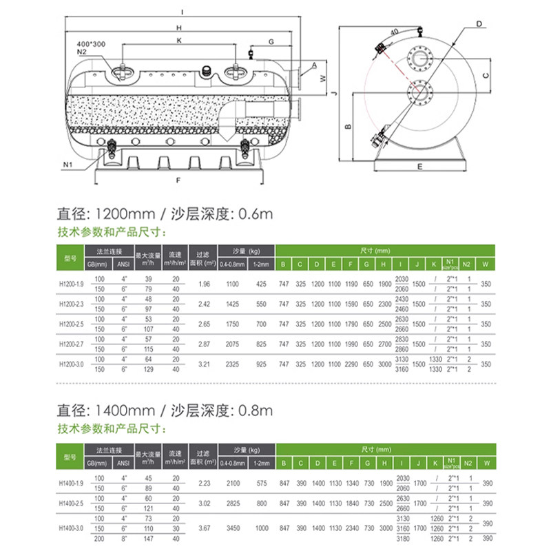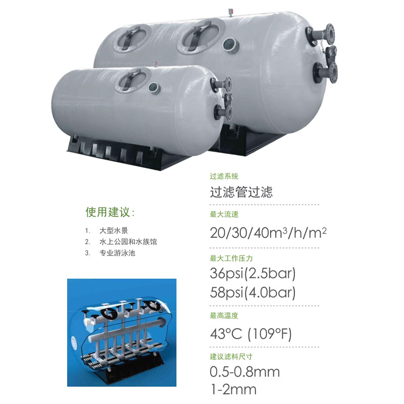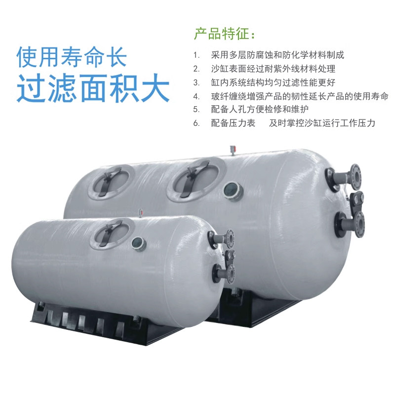意万仕EMAUX游泳池循环过滤砂缸浴池石英砂过滤设备H系列卧式沙缸