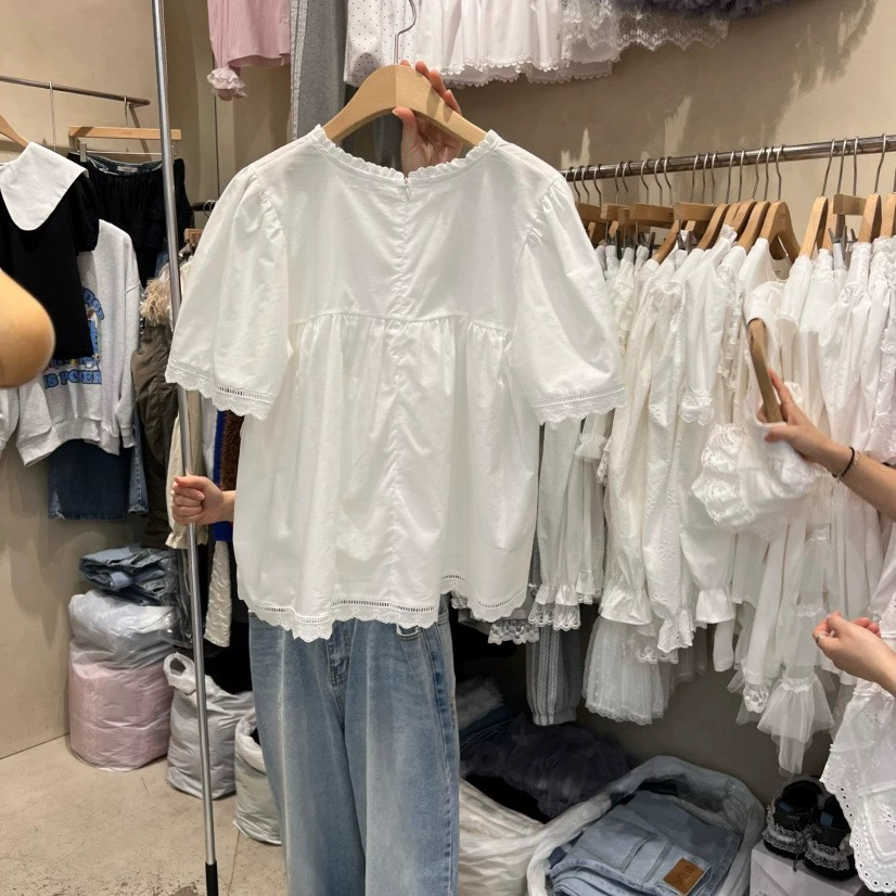 j peak韩国东大门代购2025夏季女新款花边领甜美衬衫女