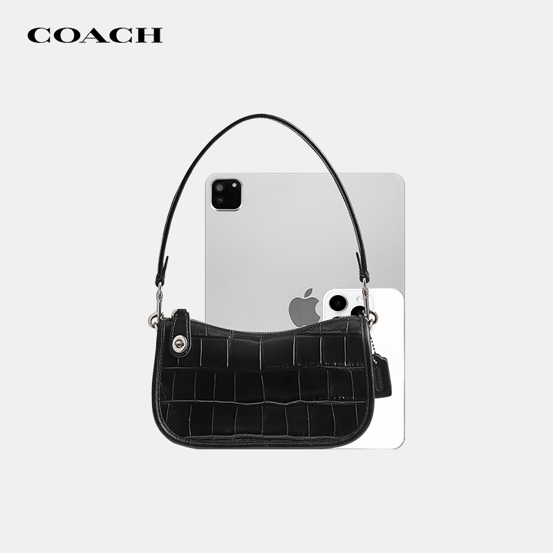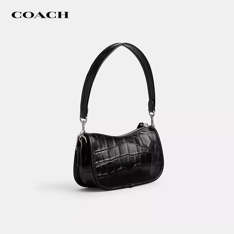 【国内现货】COACH/蔻驰Swinger纯色腋下包鳄鱼纹潮流单肩手提包