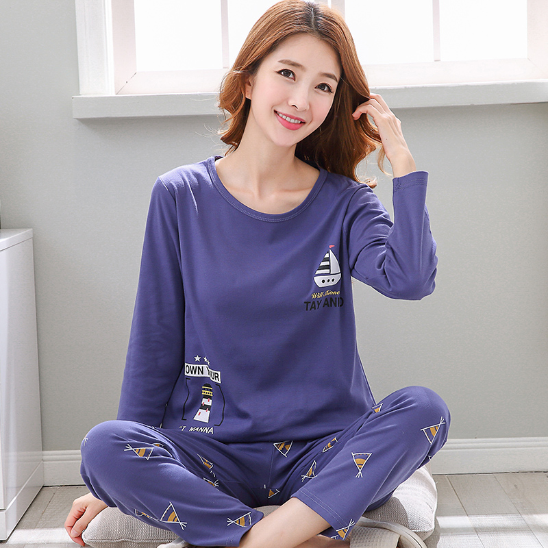 睡衣女秋季韩版公主纯棉长袖长裤加大码可外穿女士甜美家居服套装