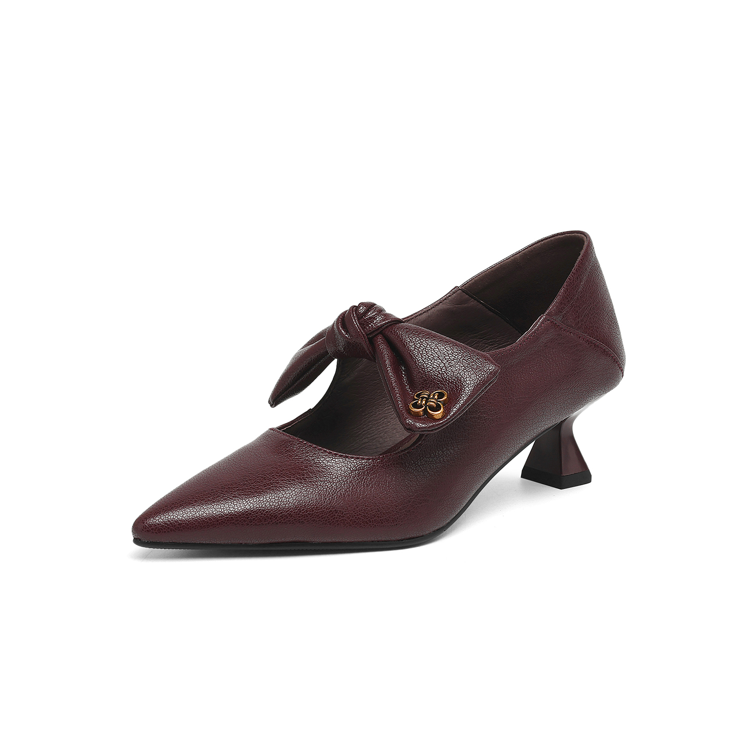 Kmeizu法式优雅~5cm细跟玛丽珍鞋女新潮大蝴蝶结尖头猫跟ol高跟鞋