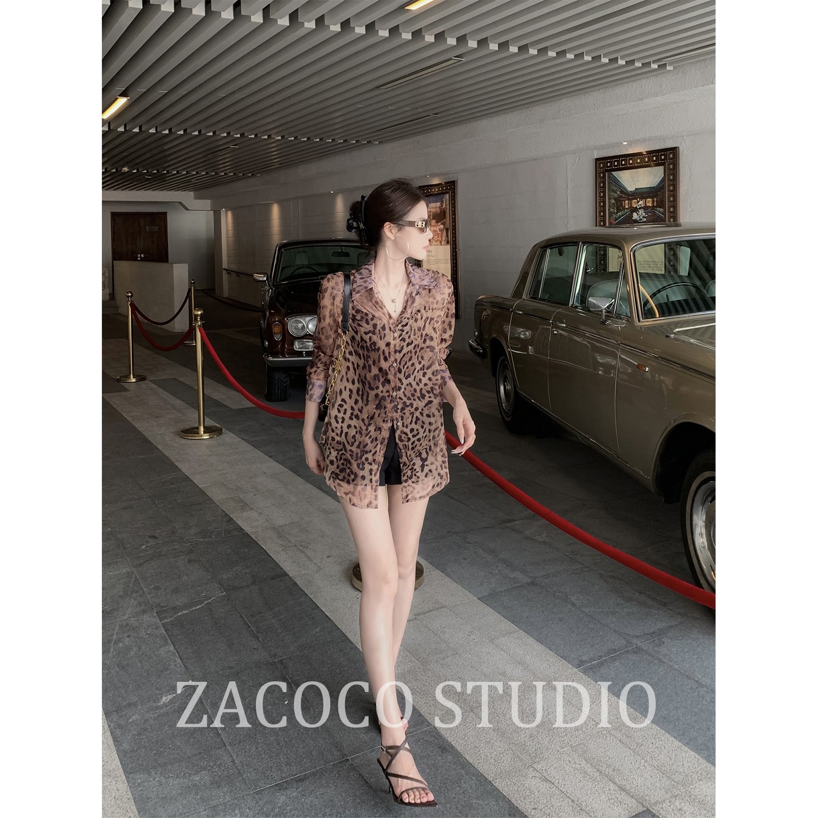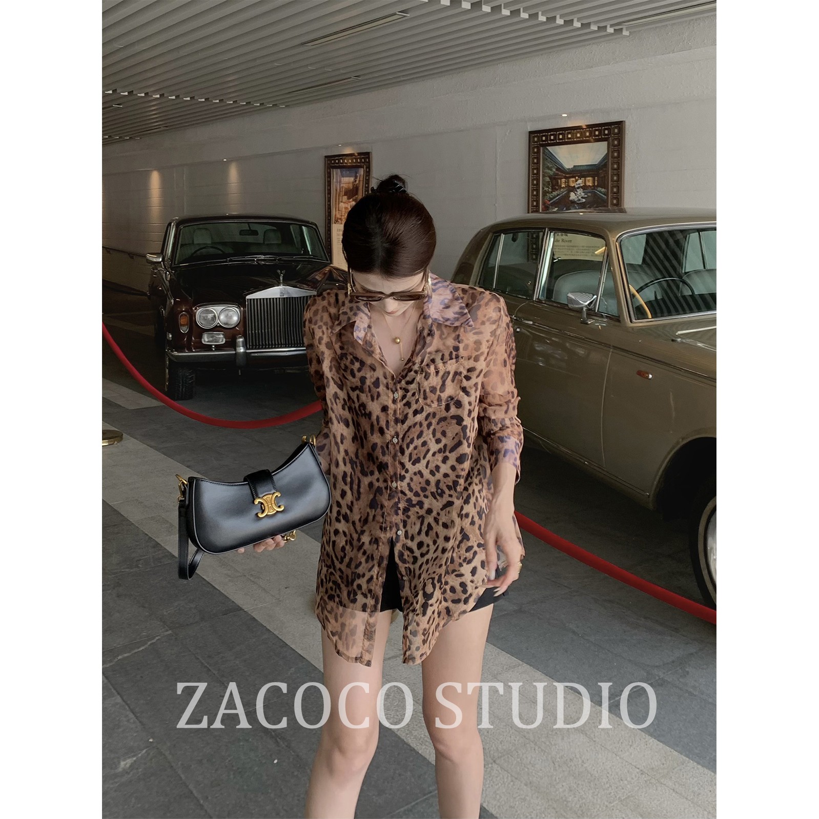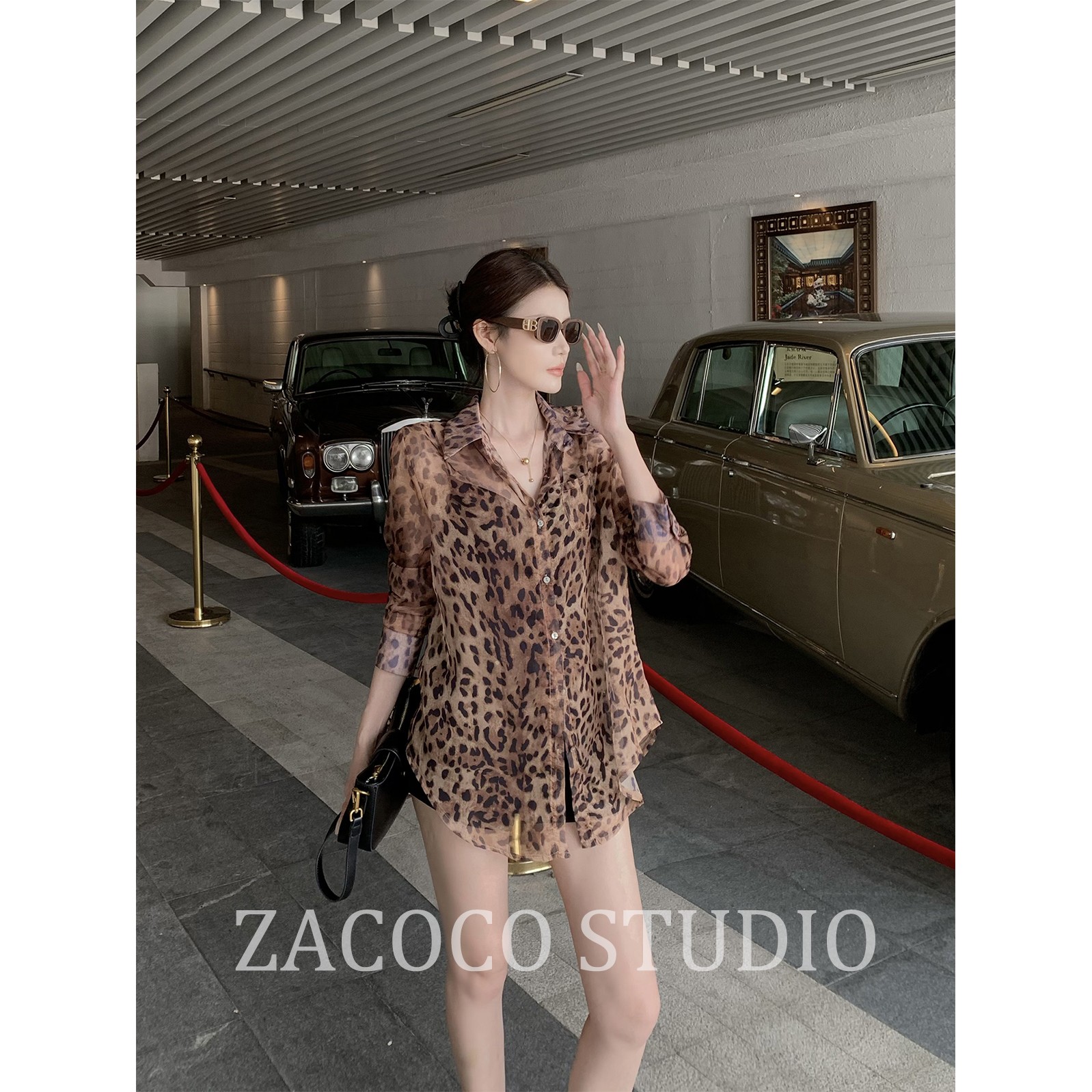 2025秋季法式气质豹纹长袖雪纺衬衫女好看性感新款高级感薄款上衣