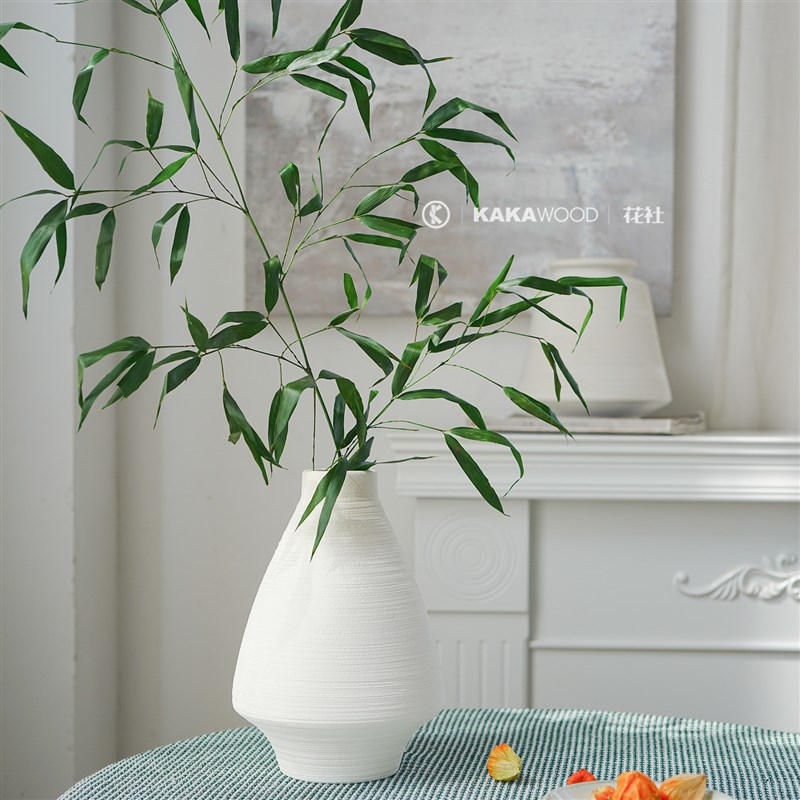 中式白色螺纹陶瓷花瓶简约插花现代家N居客厅玄关装饰摆件