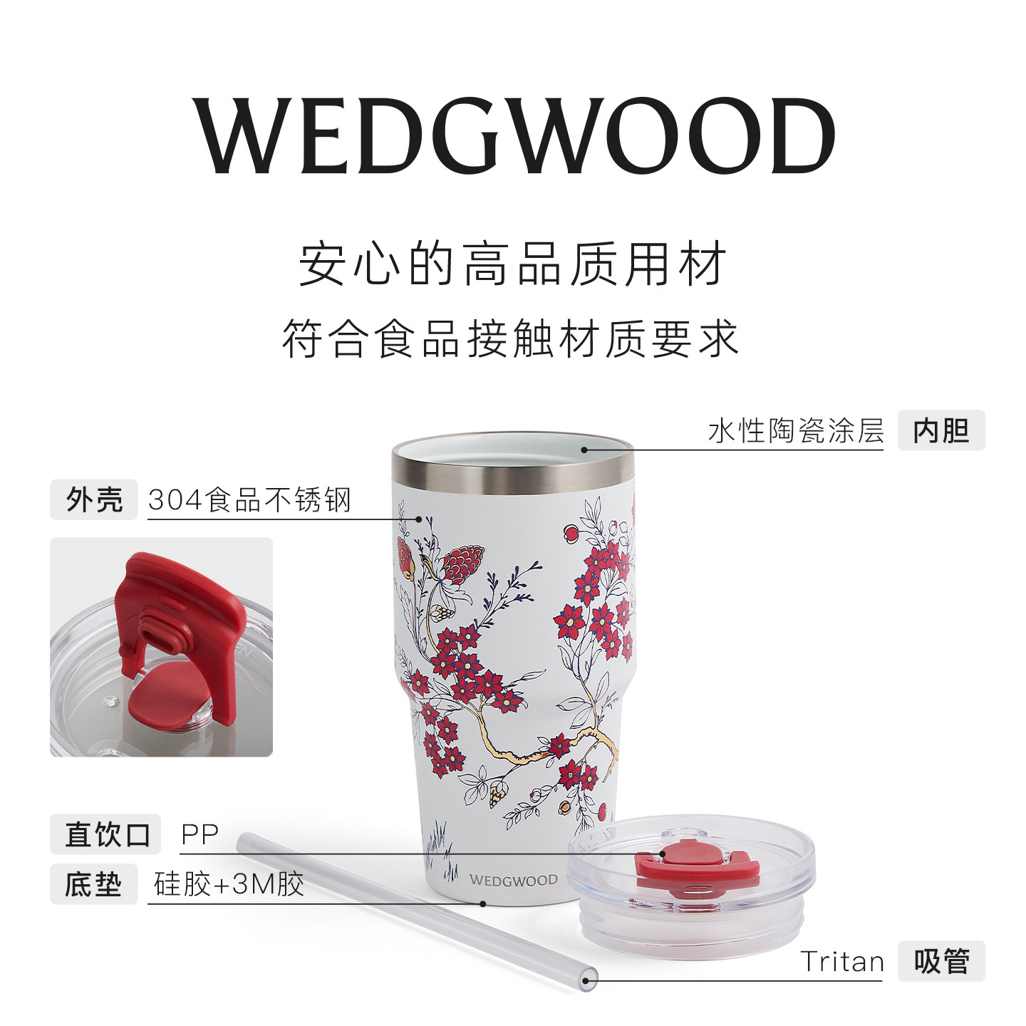 WEDGWOOD威基伍德喜上梅梢保温瓶陶瓷涂层内胆随行杯咖啡杯