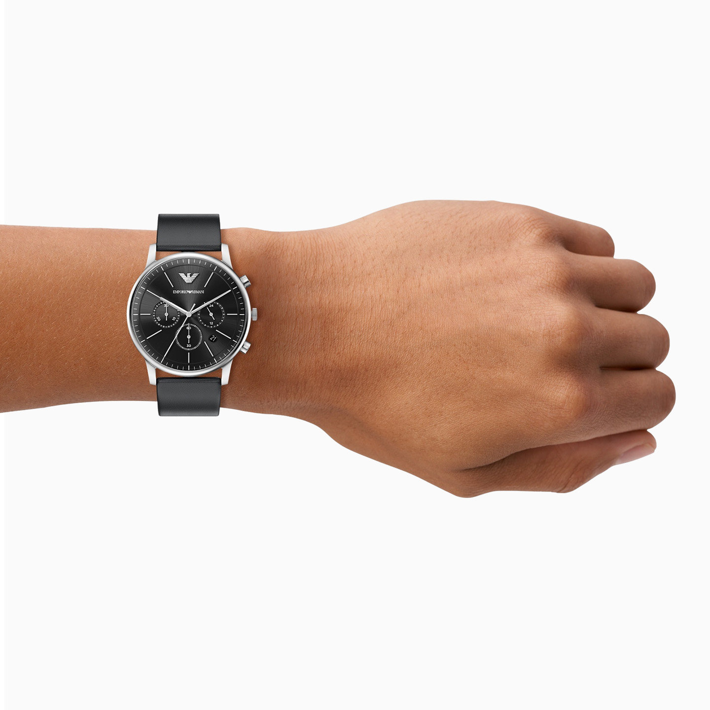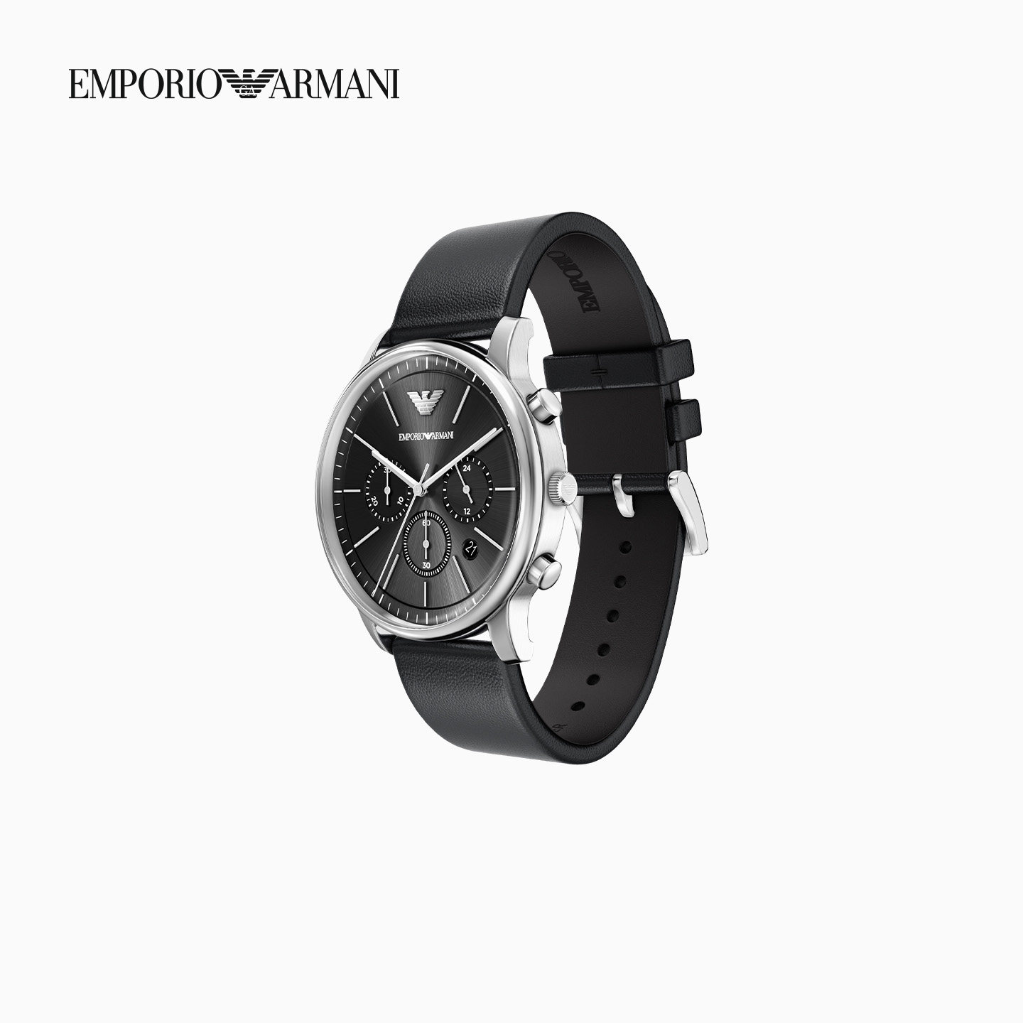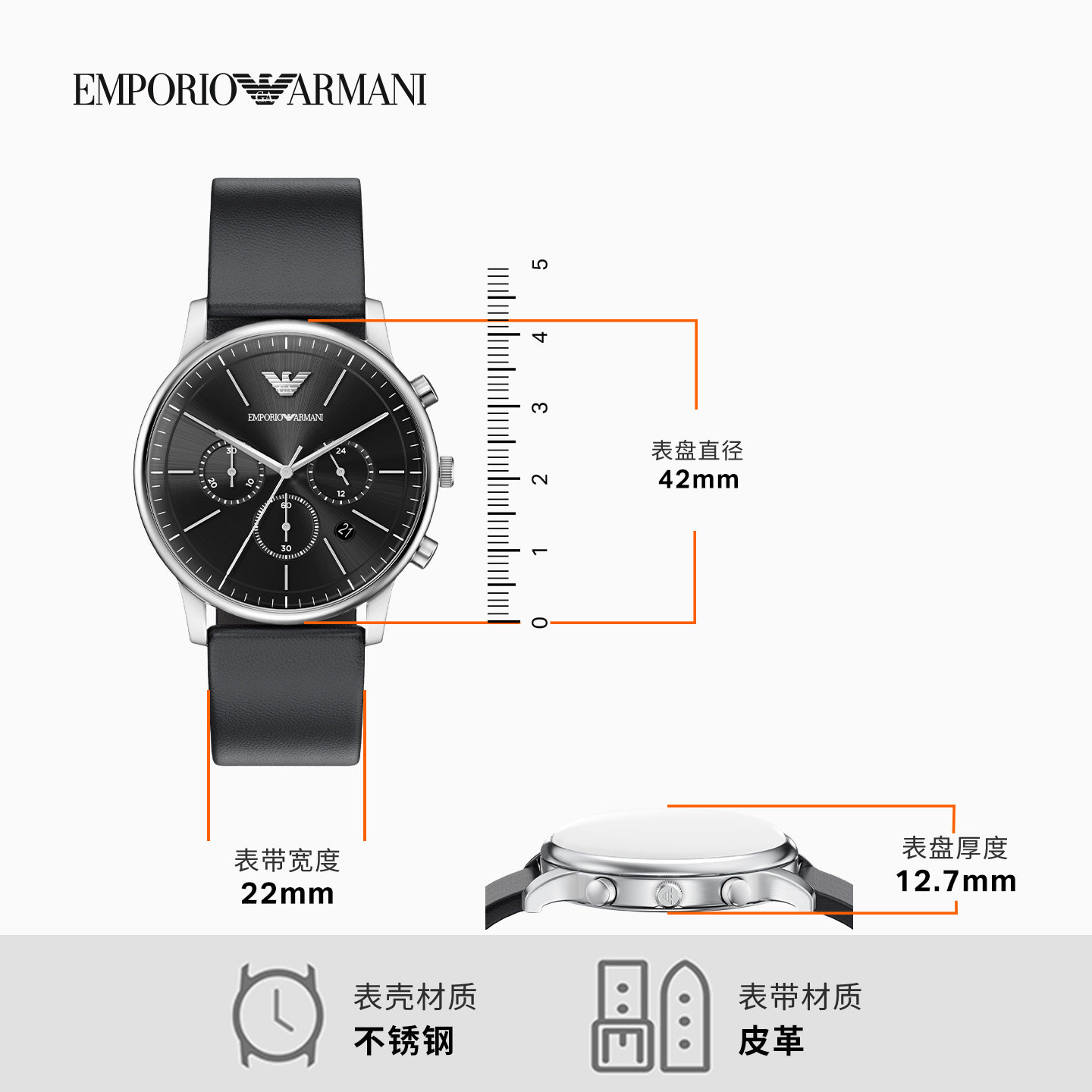 阿玛尼男士大表盘皮带石英腕表