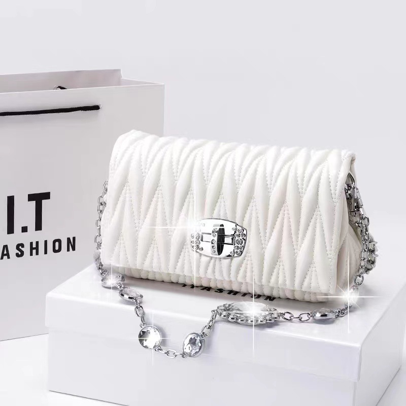 包包女2023新款时尚百搭软皮仙女包水钻链条包肩斜挎手提褶皱包