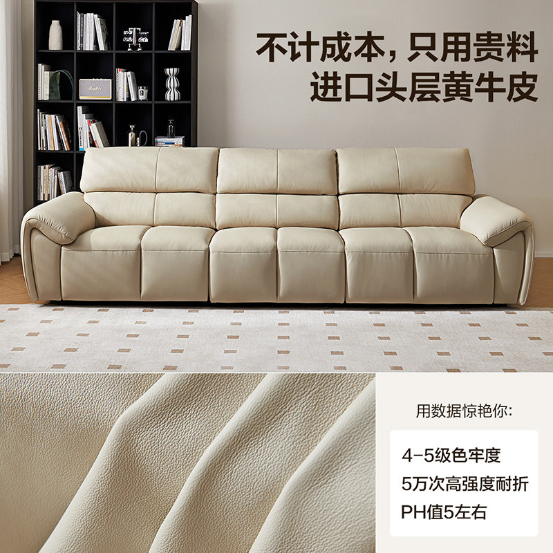 全友家居现代简约多功能电动沙发2025新款大象耳朵钢琴键真皮沙发