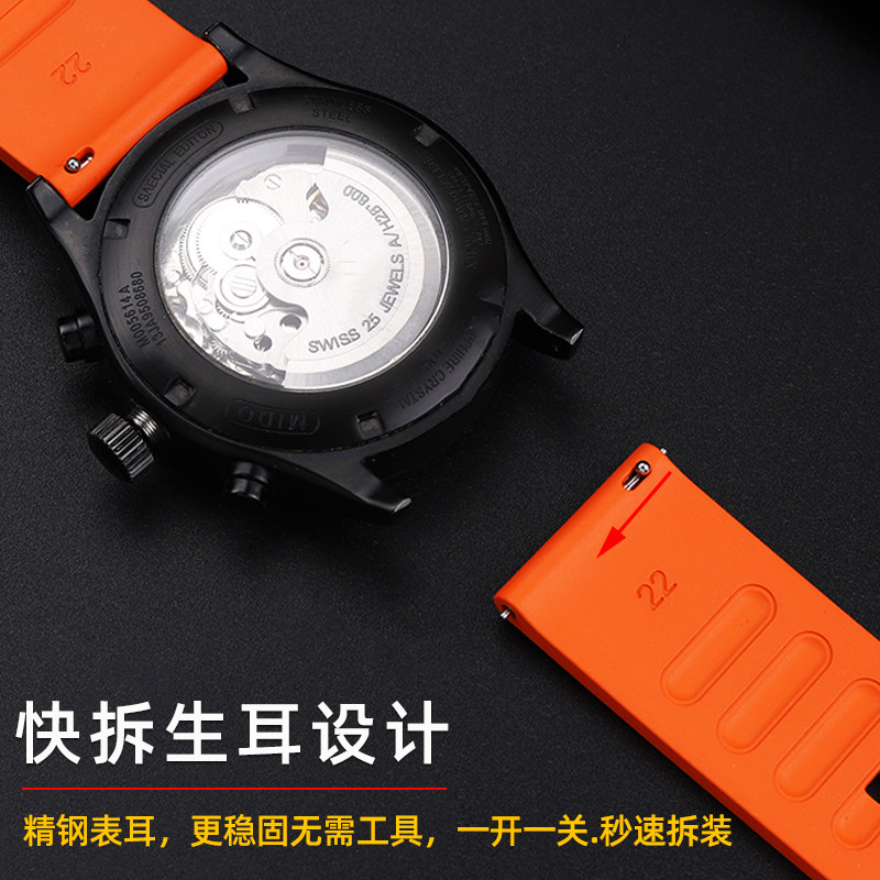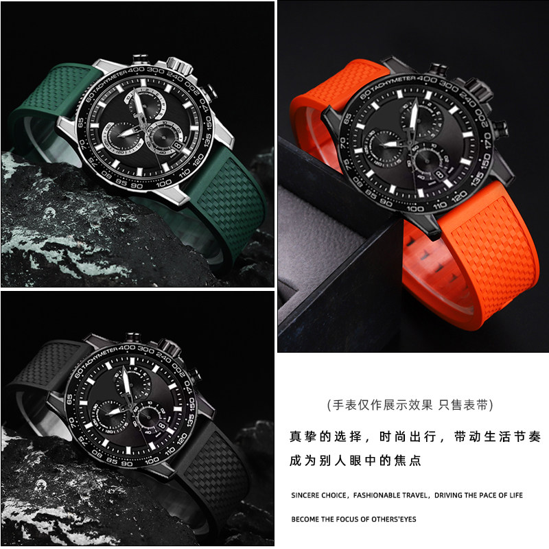 氟橡胶手表带代用天梭1853速驰T116海星速敢PRC200力洛克通用表链