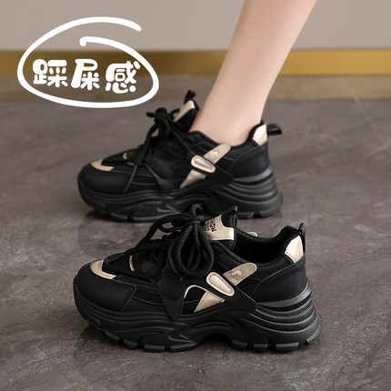 踩屎感34码运动鞋女秋季新款久站不累脚软底工作鞋黑色防滑老爹鞋
