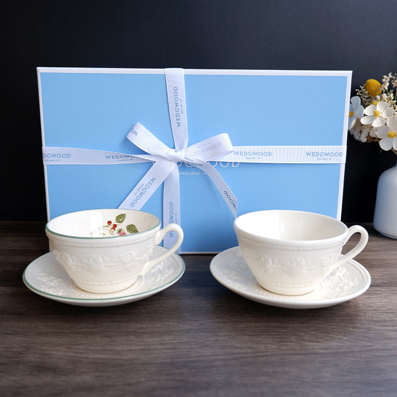 现货Wedgwood欢愉假日树莓浮雕红茶咖啡杯茶杯碟情侣对杯茶壶礼盒