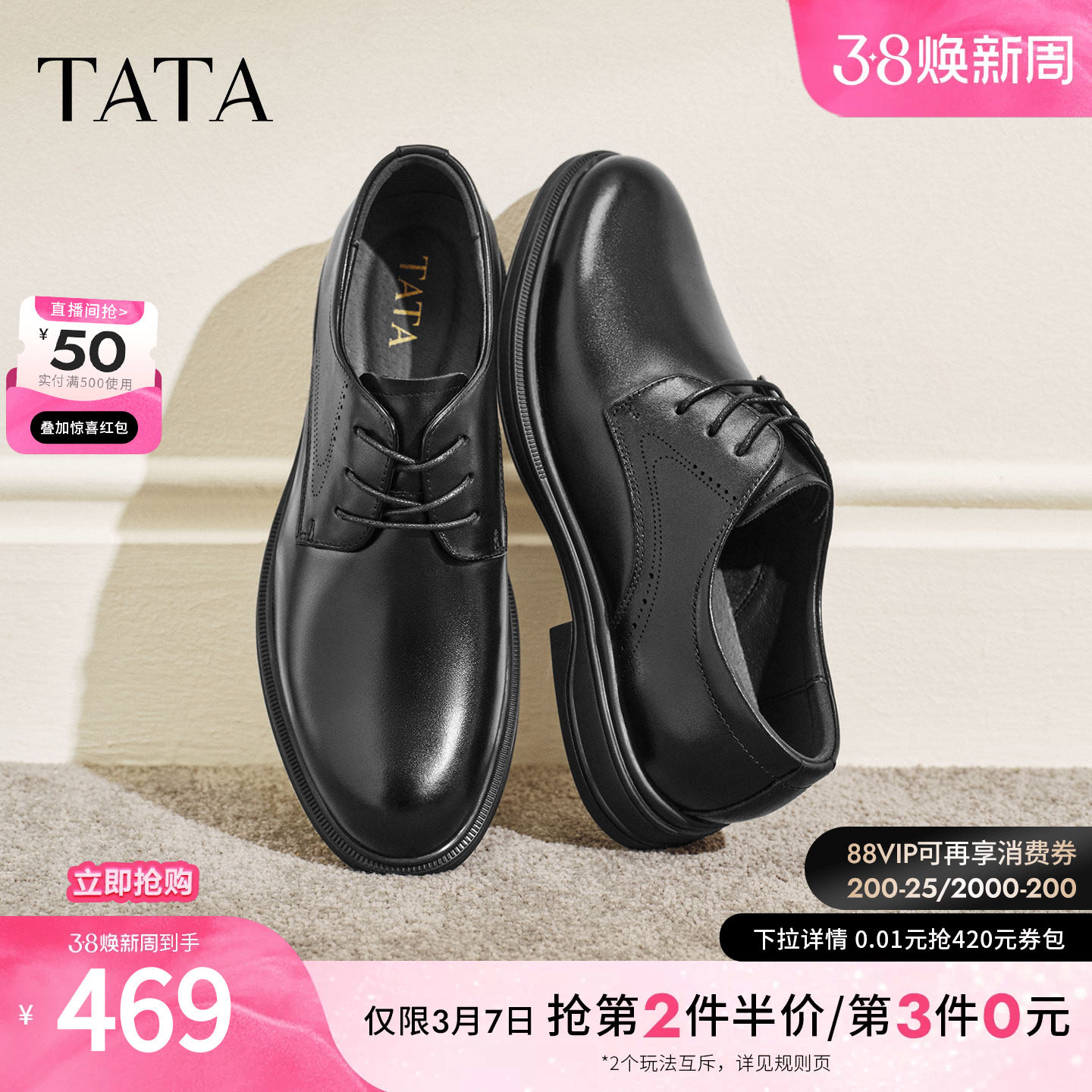 TATA他她男鞋2026春商场同款纯色舒适百搭正装皮鞋新款OFW01AM6
