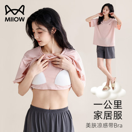 猫人带胸垫睡衣女夏季薄款莫代尔单件上衣棉绸短袖t恤家居服新款