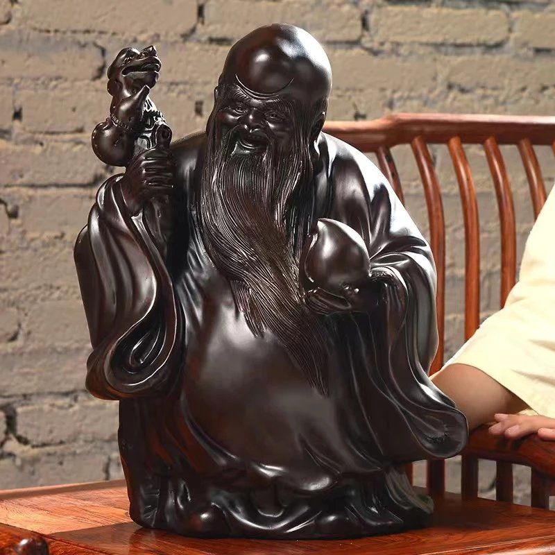 花梨木雕刻老寿星公摆件家居客厅装饰红木工艺品生日祝寿贺寿送礼