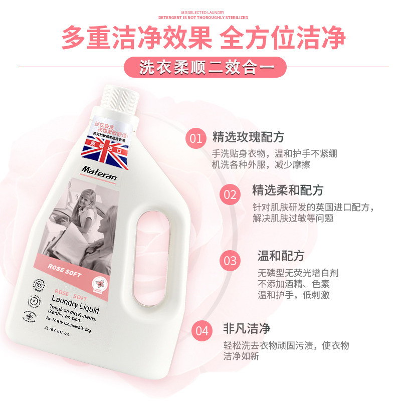 美芙然进口洗衣液香味持久无人区玫瑰洗衣液机洗柔顺护色实惠装3L