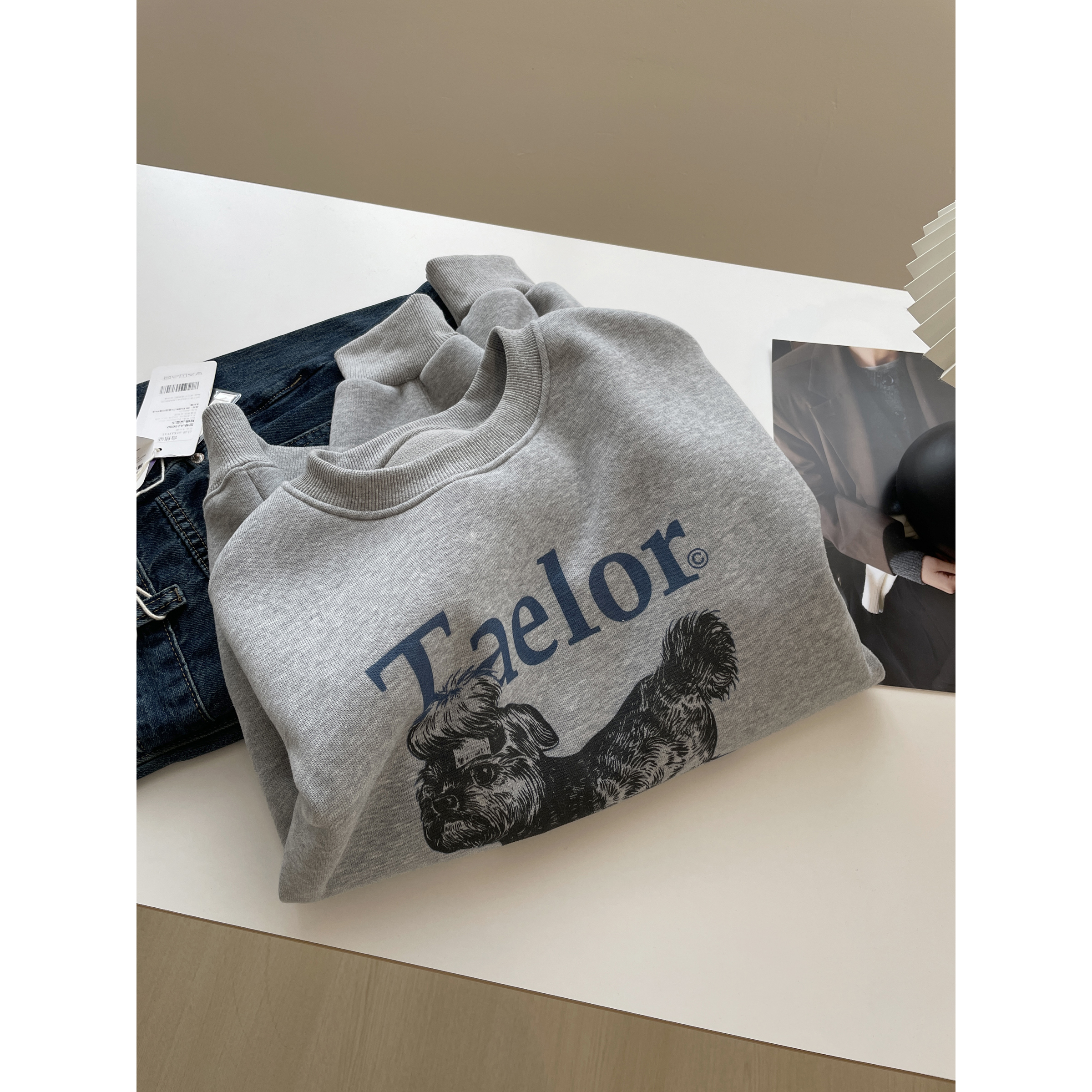韩系减龄狗狗印花圆领加绒卫衣女!秋冬百搭宽松显瘦套头休闲上衣
