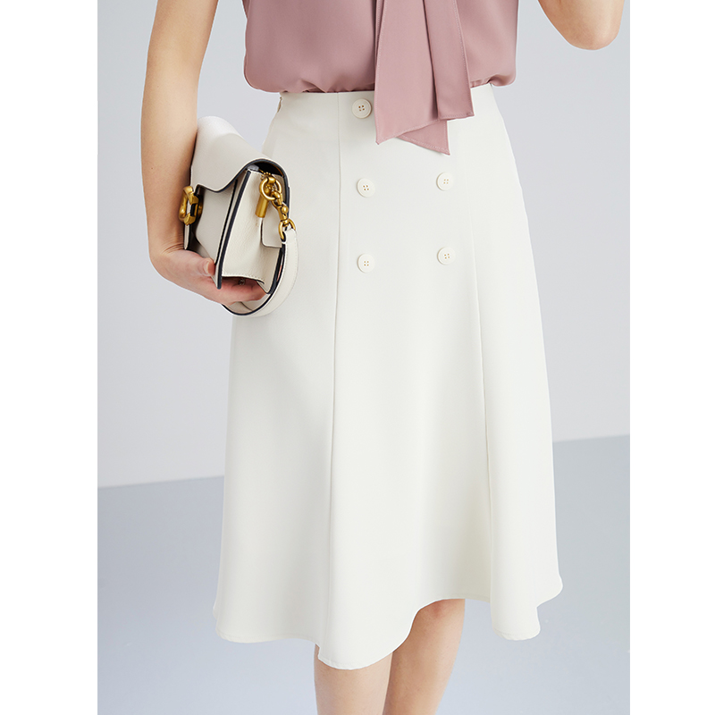 璐丝百丽白色半身裙女夏季垂感高腰中长款a字裙显瘦职业夏天伞裙