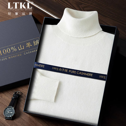 高领毛衣男100%纯山羊绒衫男秋冬