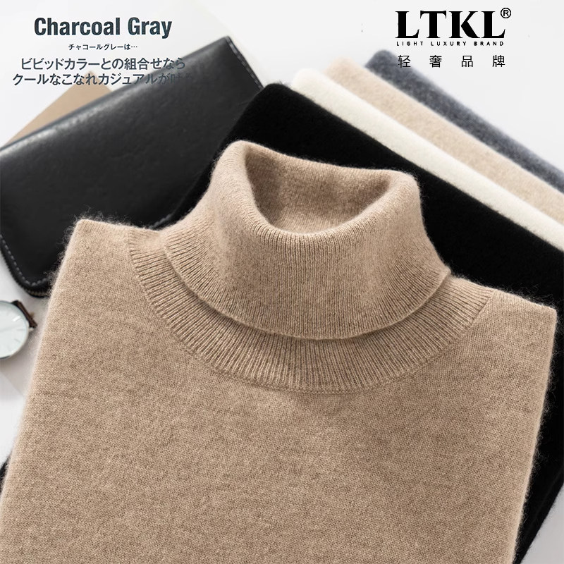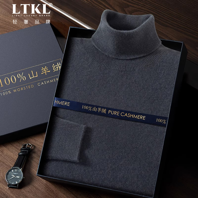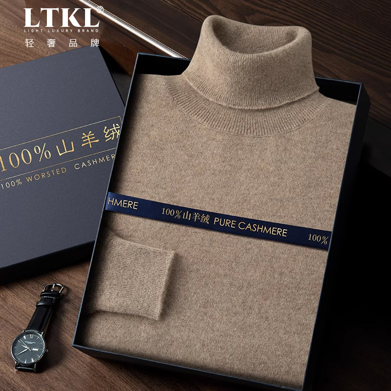 鄂尔多斯市高领毛衣男100%纯山羊绒衫男秋冬加厚可翻领针织打底衫