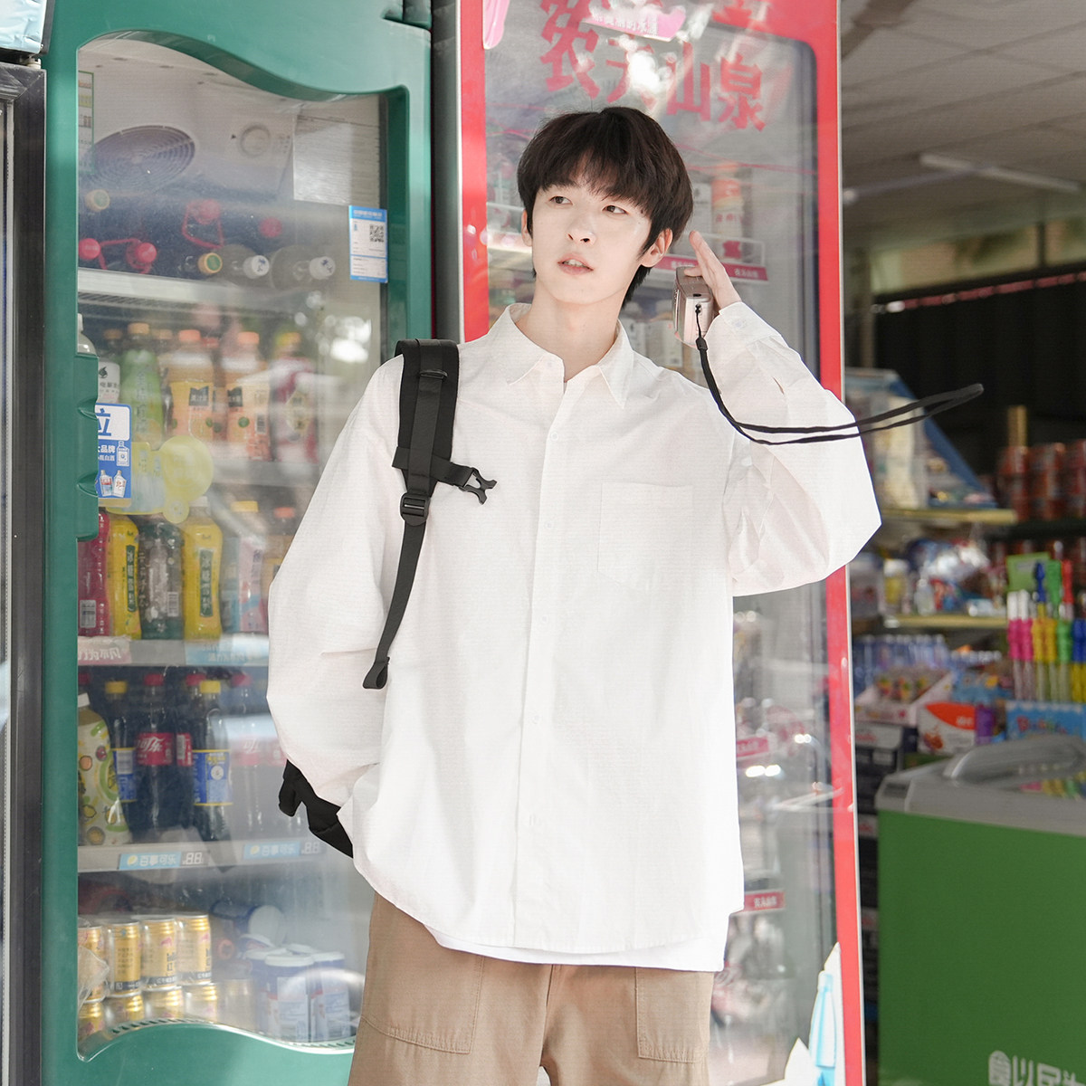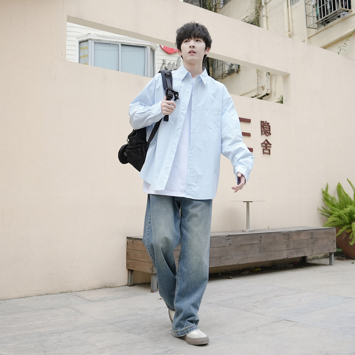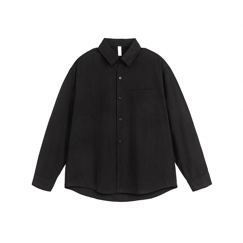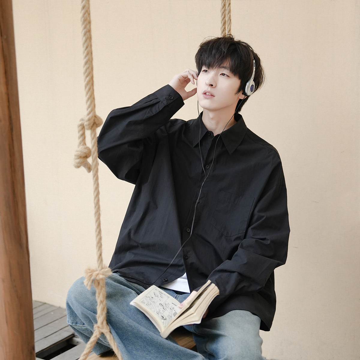 @港仔文艺男 日系纯色长袖衬衫男秋冬款cleanfit口袋内搭衬衣外套