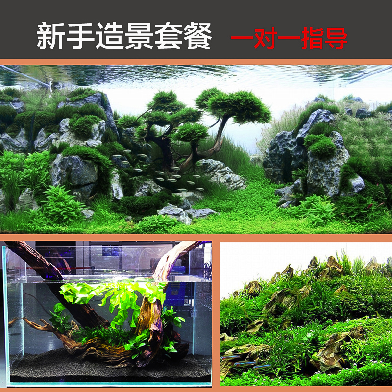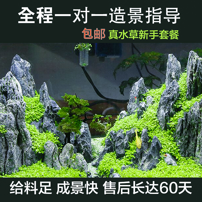 鱼缸造景装饰套餐水族箱真水草青龙石松皮水草泥沉木造景石头包邮