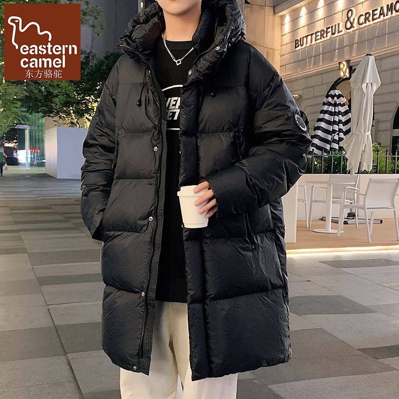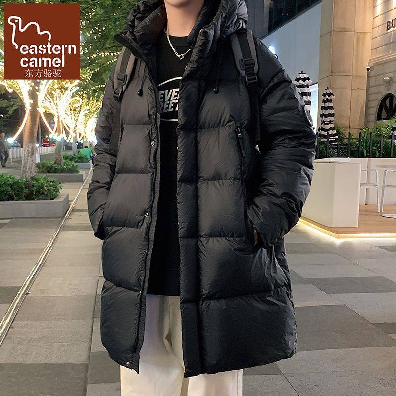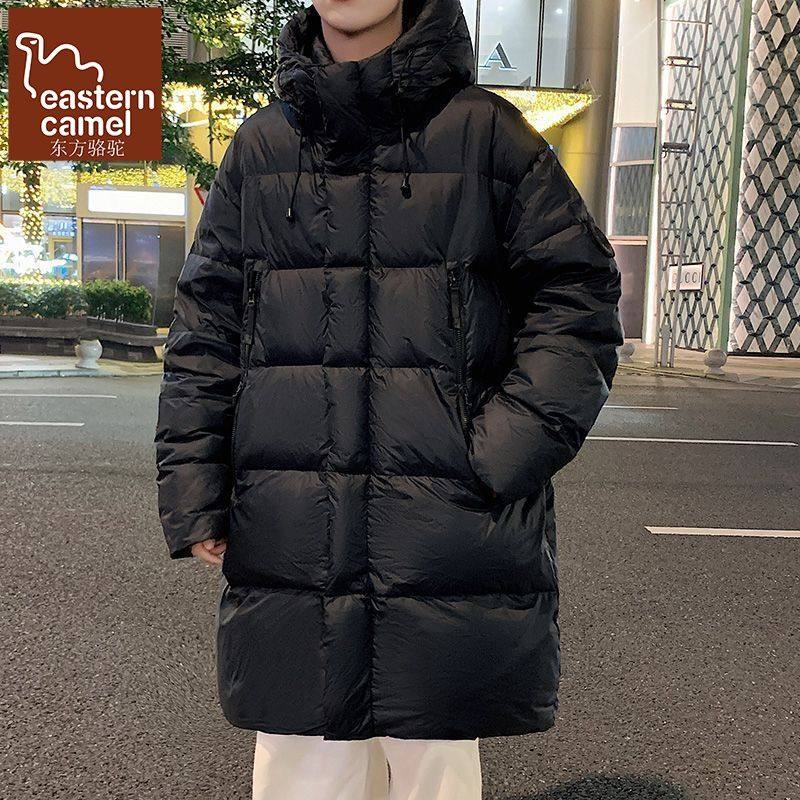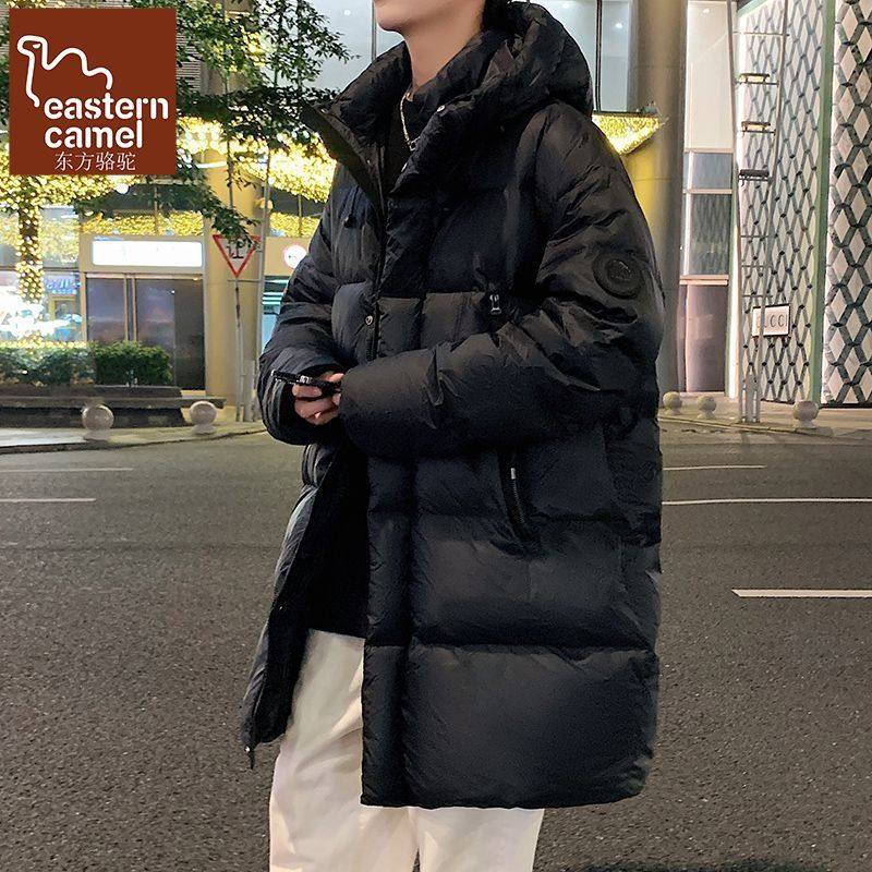 2025新款纯色连帽中长款羽绒服男士冬季加绒加厚潮流防寒过膝外套