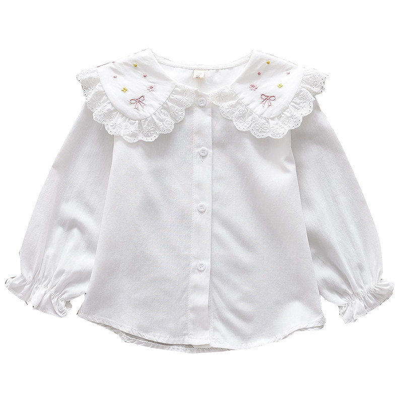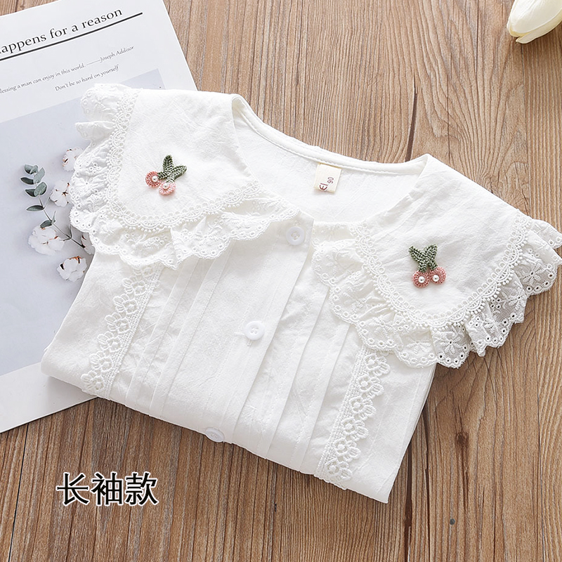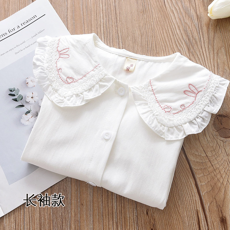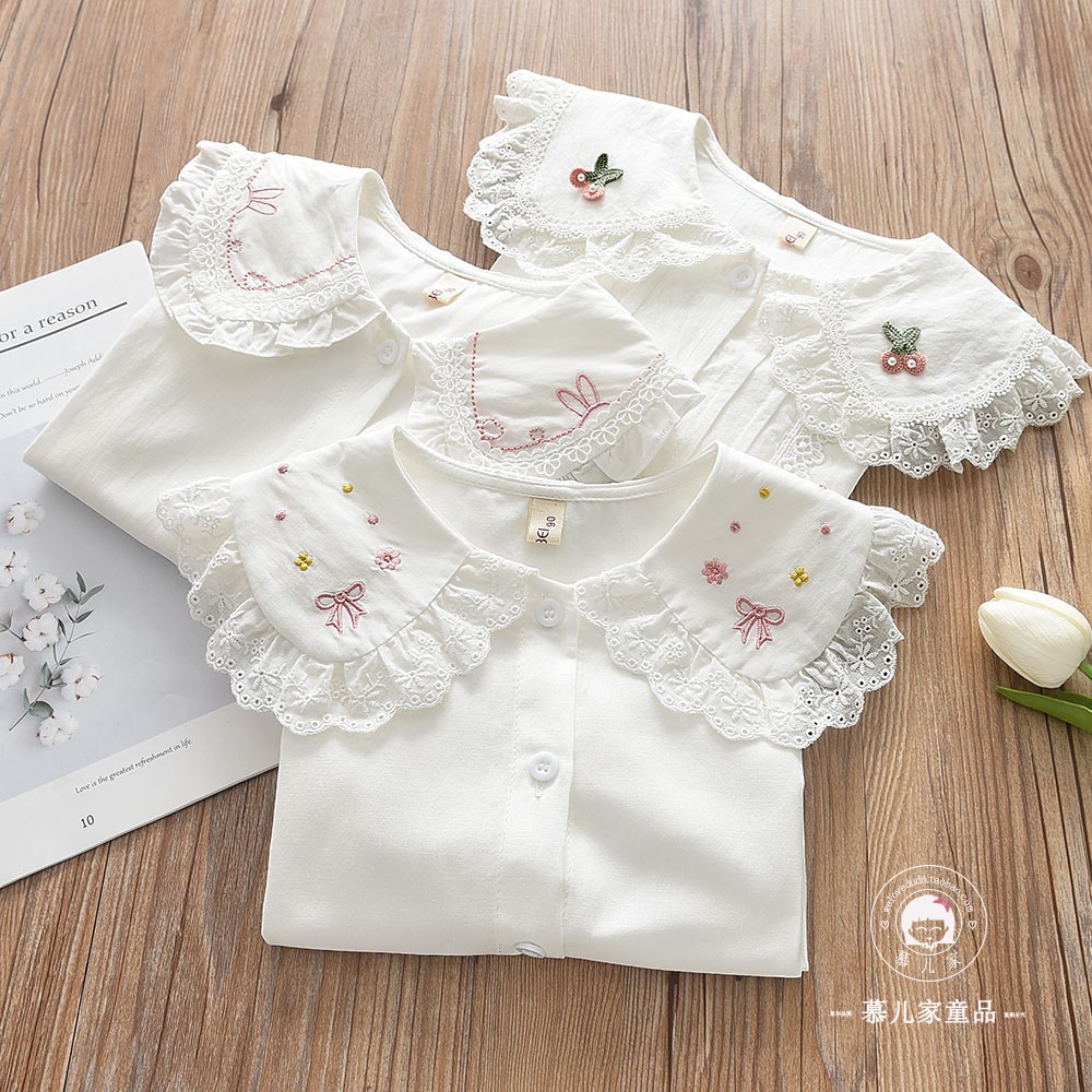 洋气纯棉女童长袖短袖衬衫儿童刺绣大翻领打底衫上衣中大童娃娃衫