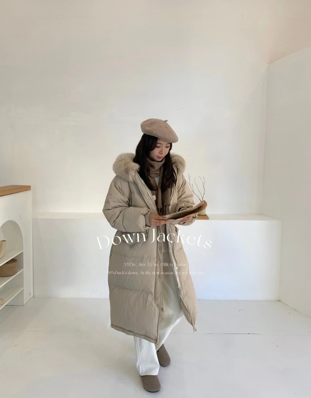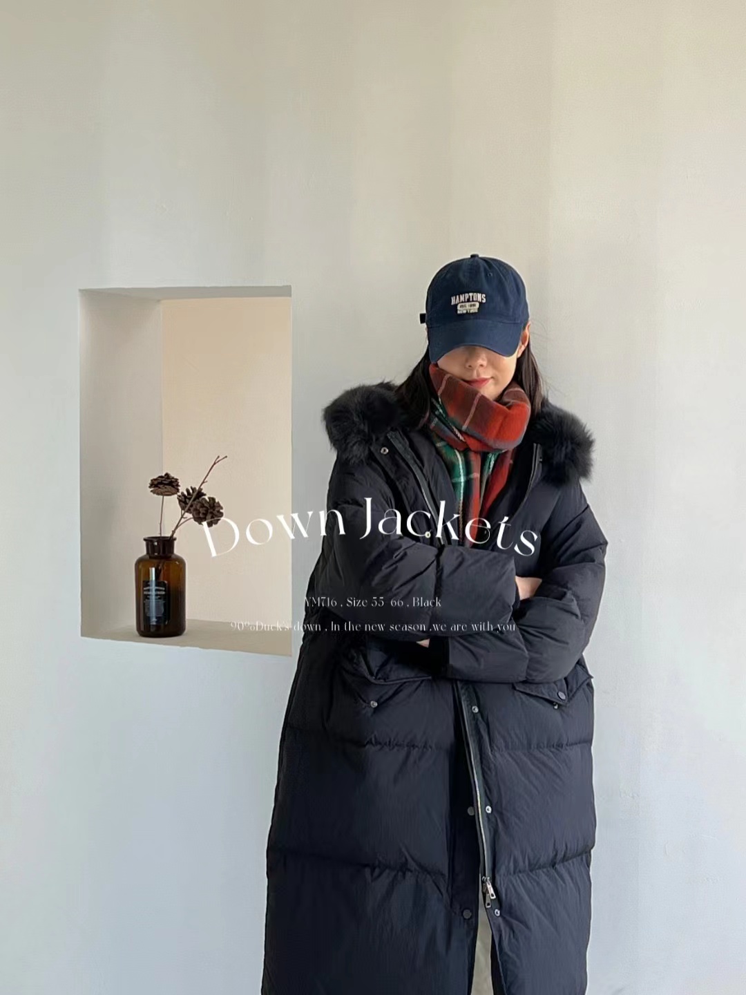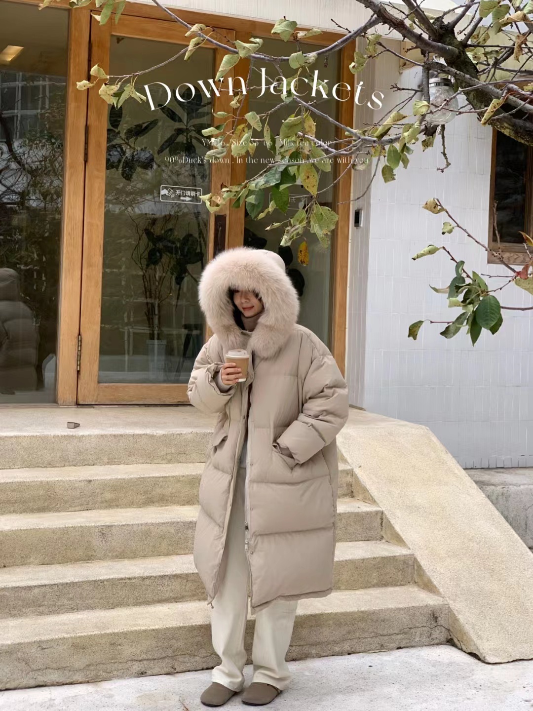 韩国新款羽绒服长款716白鸭绒90% 大毛领时尚通勤女装羽绒服362克