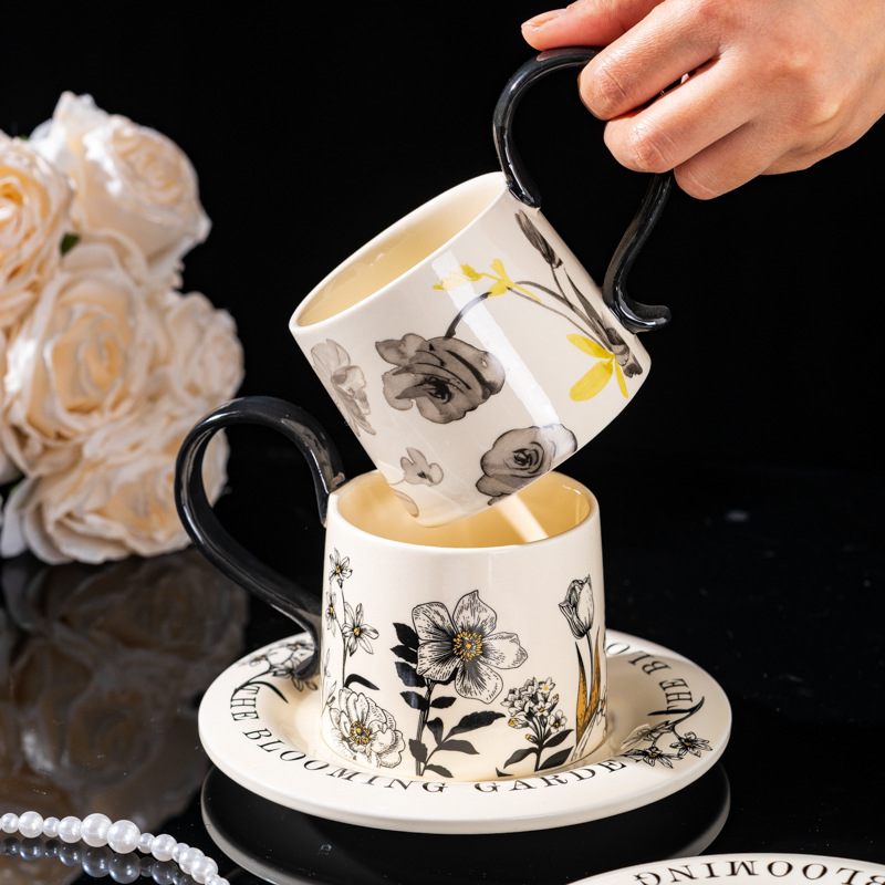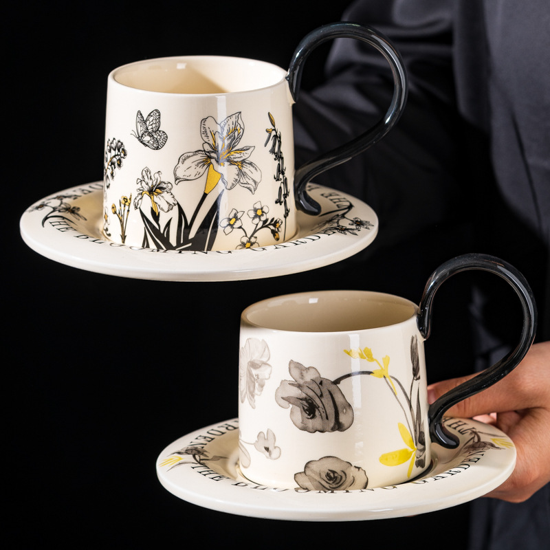 中古风陶瓷咖啡杯碟套装一杯一碟咖啡杯早餐杯马克杯精致礼盒装
