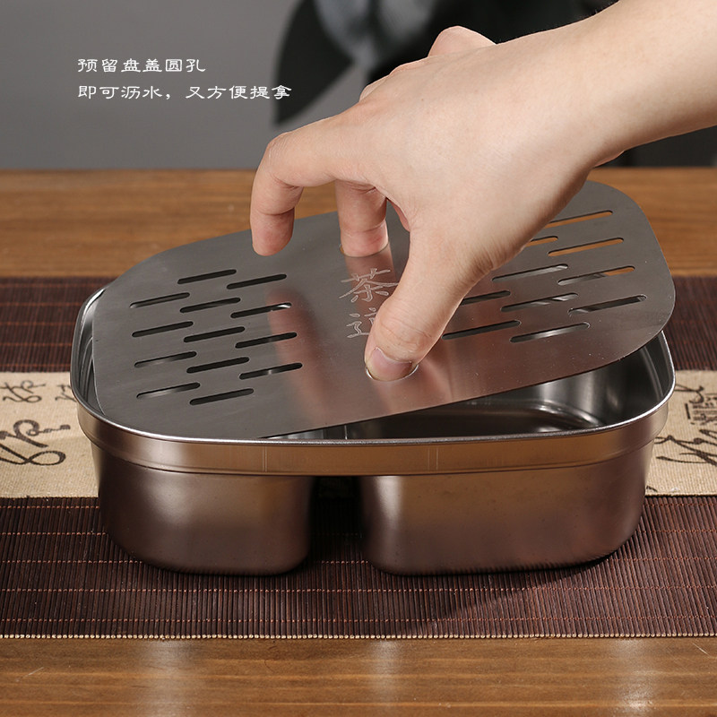 新款方形不锈钢工夫茶盘储水家用户外便携茶托盘茶具全套干泡台