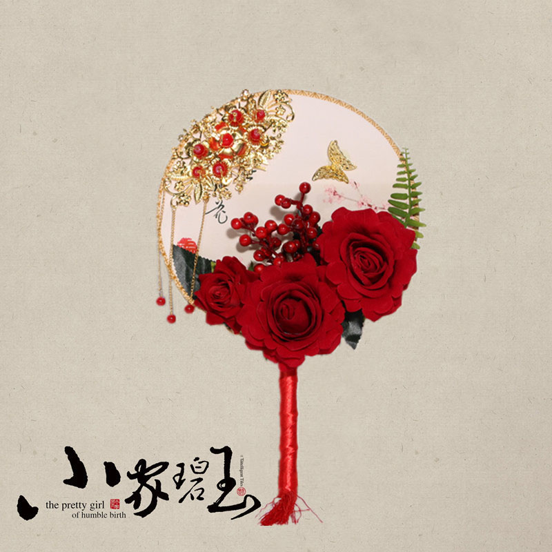 工笔画复古风格古装拍摄影道具婚纱影楼中国风创意儿童拍照扇子