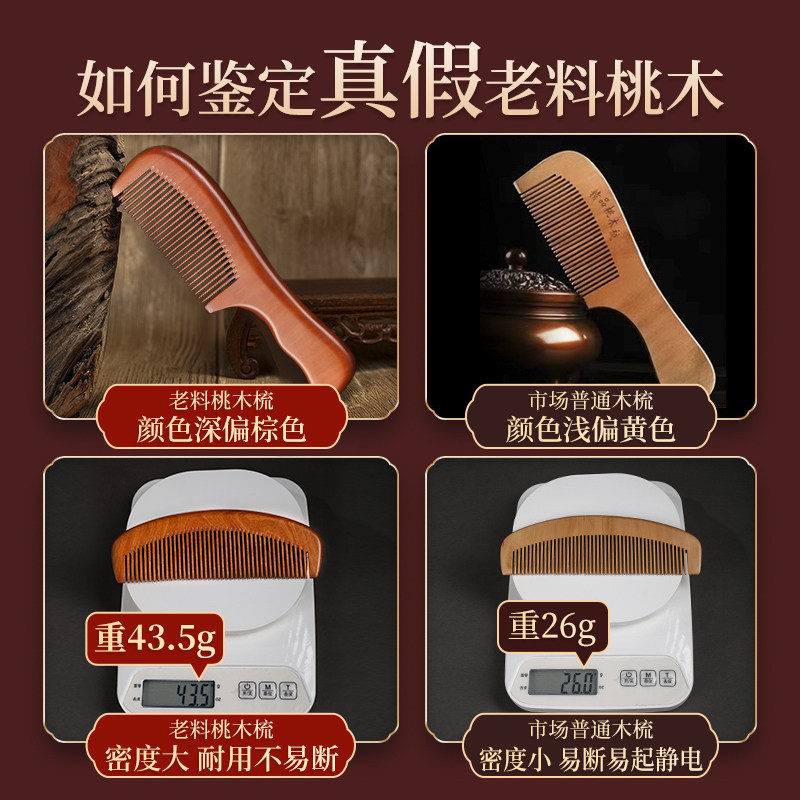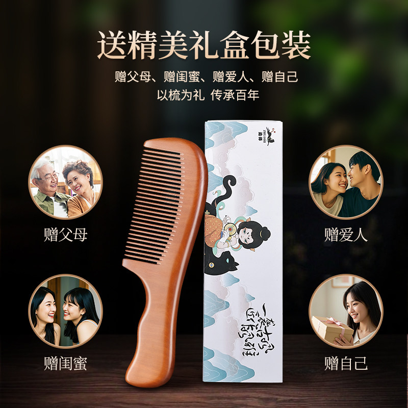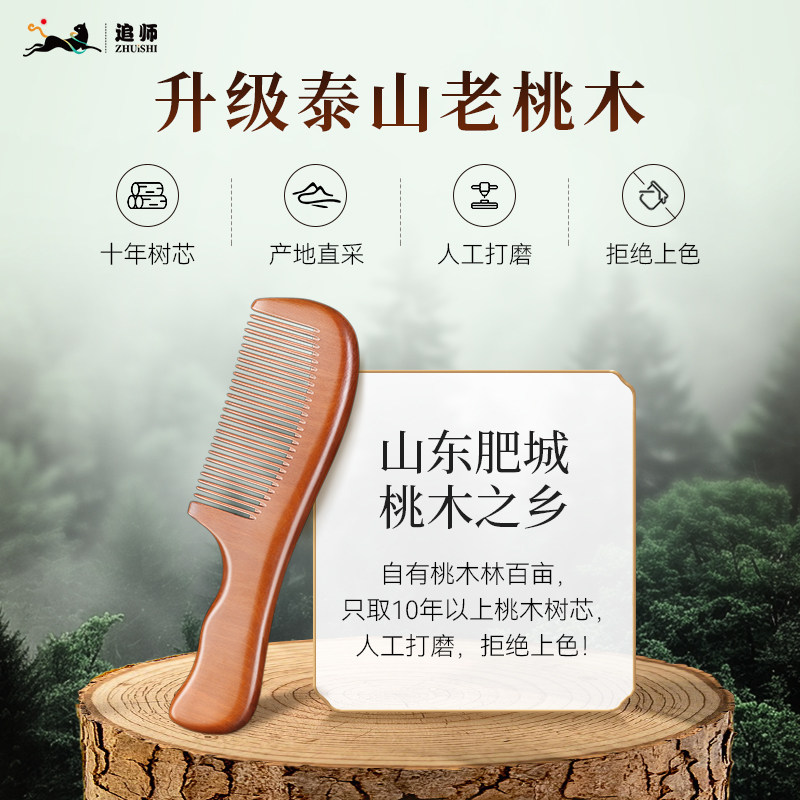 追师天然桃木梳子家用木头静电正品实木梳男士女士长发专用