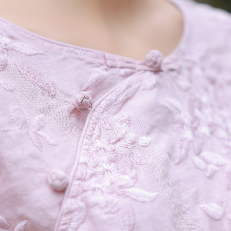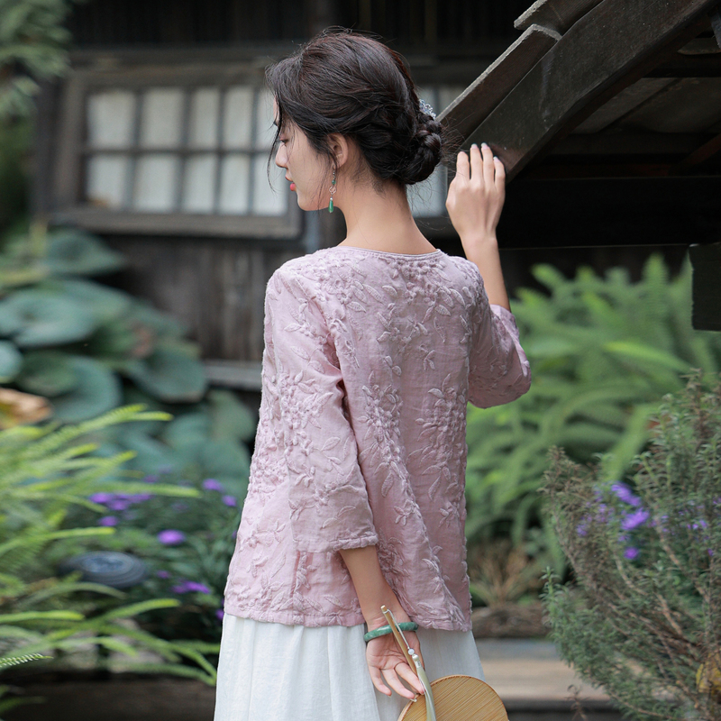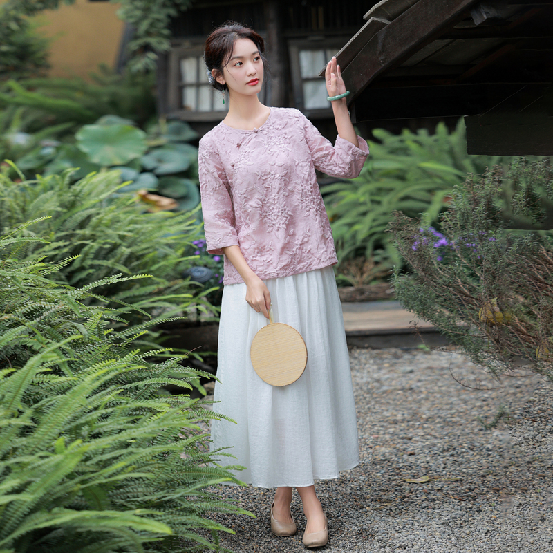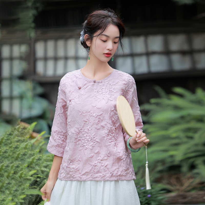 粉色中式女装中国风上衣高端品牌唐装女夏2025新款茶服女禅意文艺
