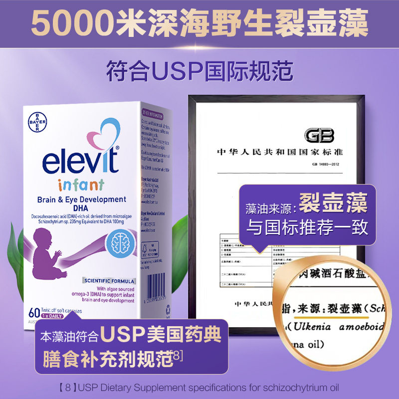 【旗舰店】进口小爱乐维婴幼儿海藻油DHA儿童专用非鱼肝油60粒*3
