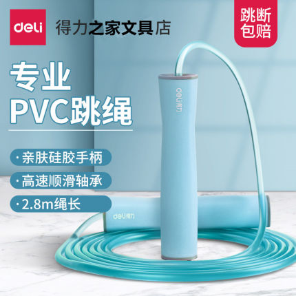 【正品】得力PVC跳绳硅胶手柄高速轴承专业健身减肥成人燃脂中考
