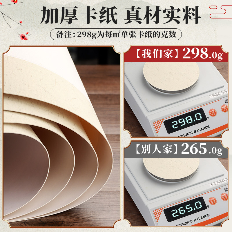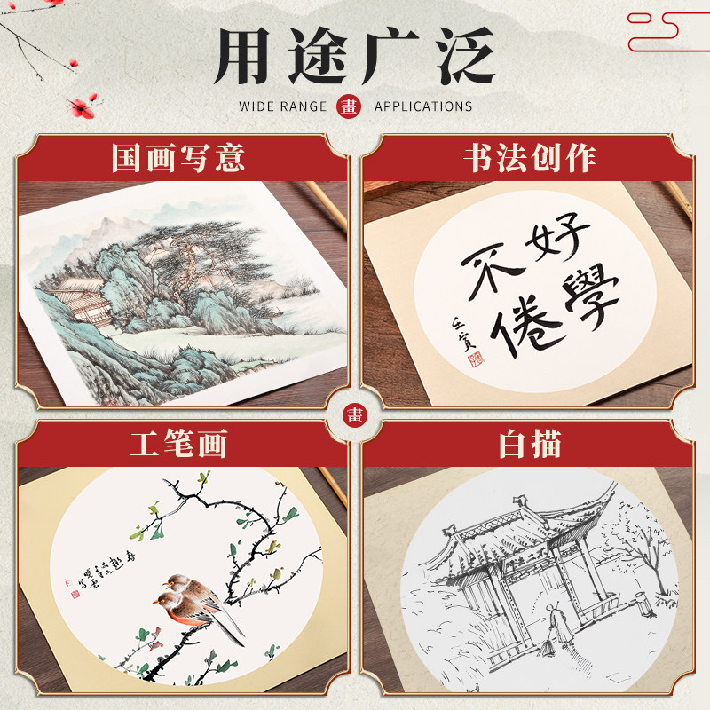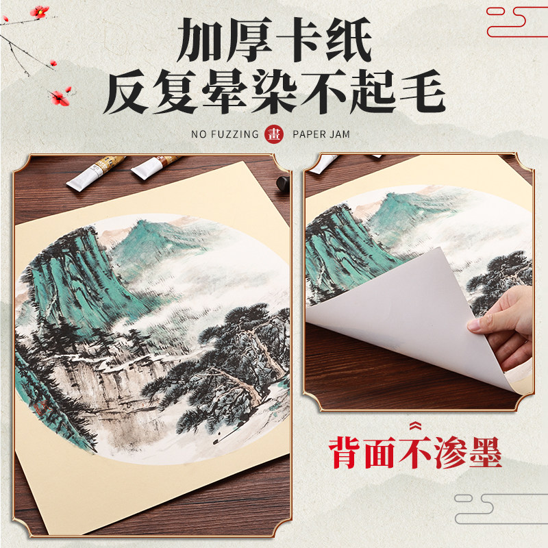 三宝云国画卡纸镜面宣纸半生熟作品书法专用生宣纸生宣熟宣外方内圆工笔毛笔美术正方形半熟画画软笔镜片画纸