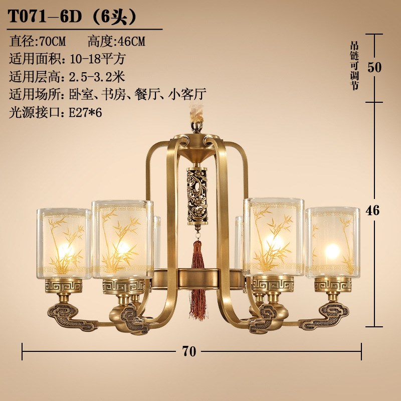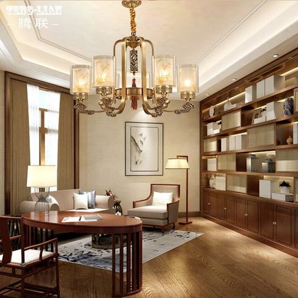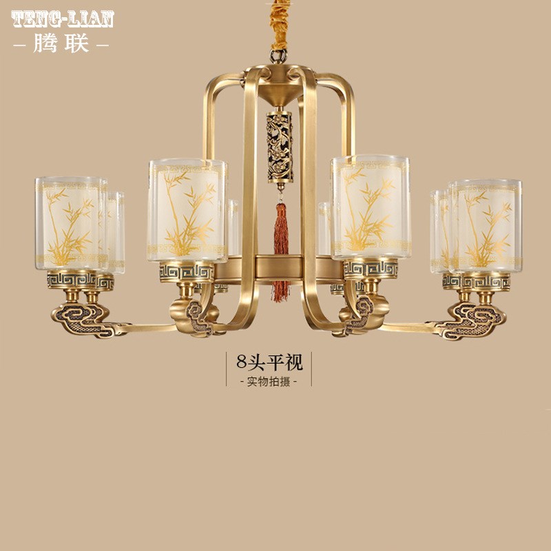 中式大气全铜吊灯简约创意客厅卧室餐厅灯新中式家用饭厅书房灯具