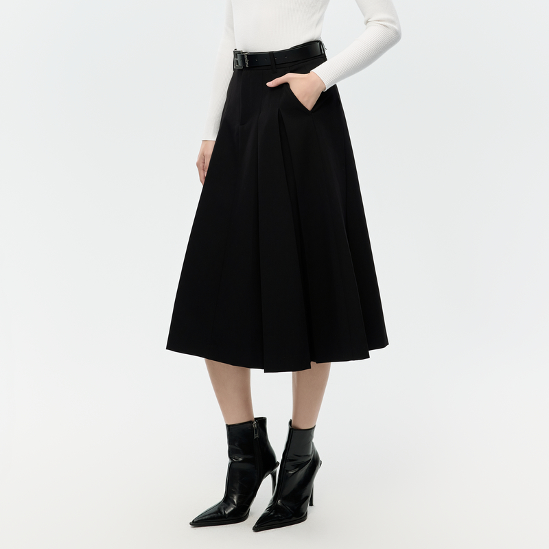 飘蕾黑色百褶长裙女2025秋季新款时尚气质简约百搭学院风a版显瘦