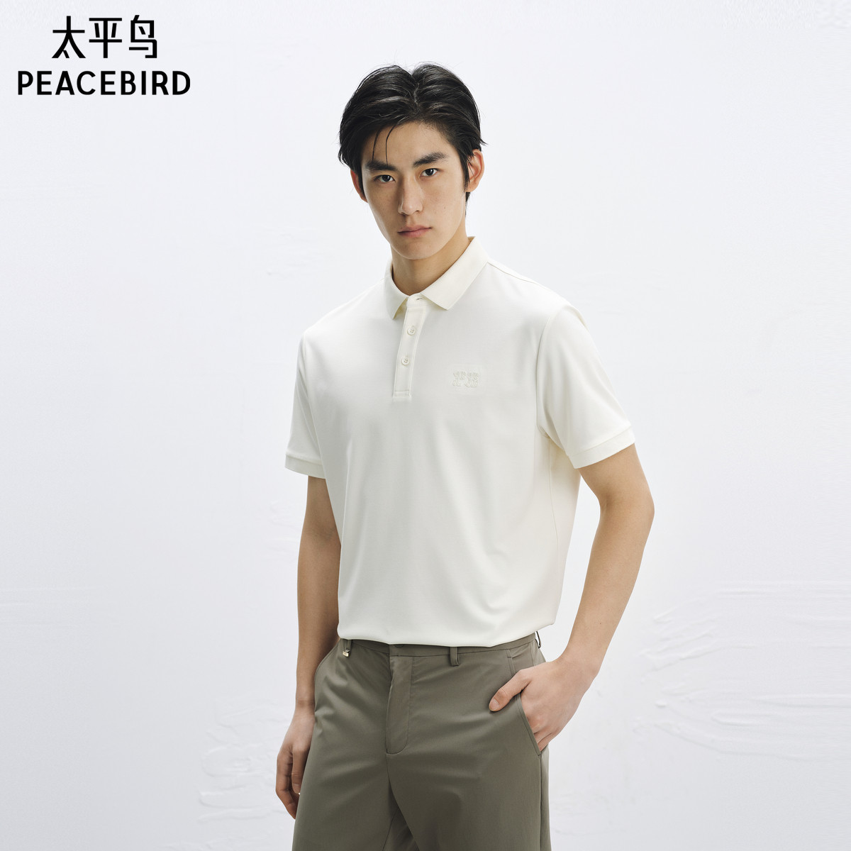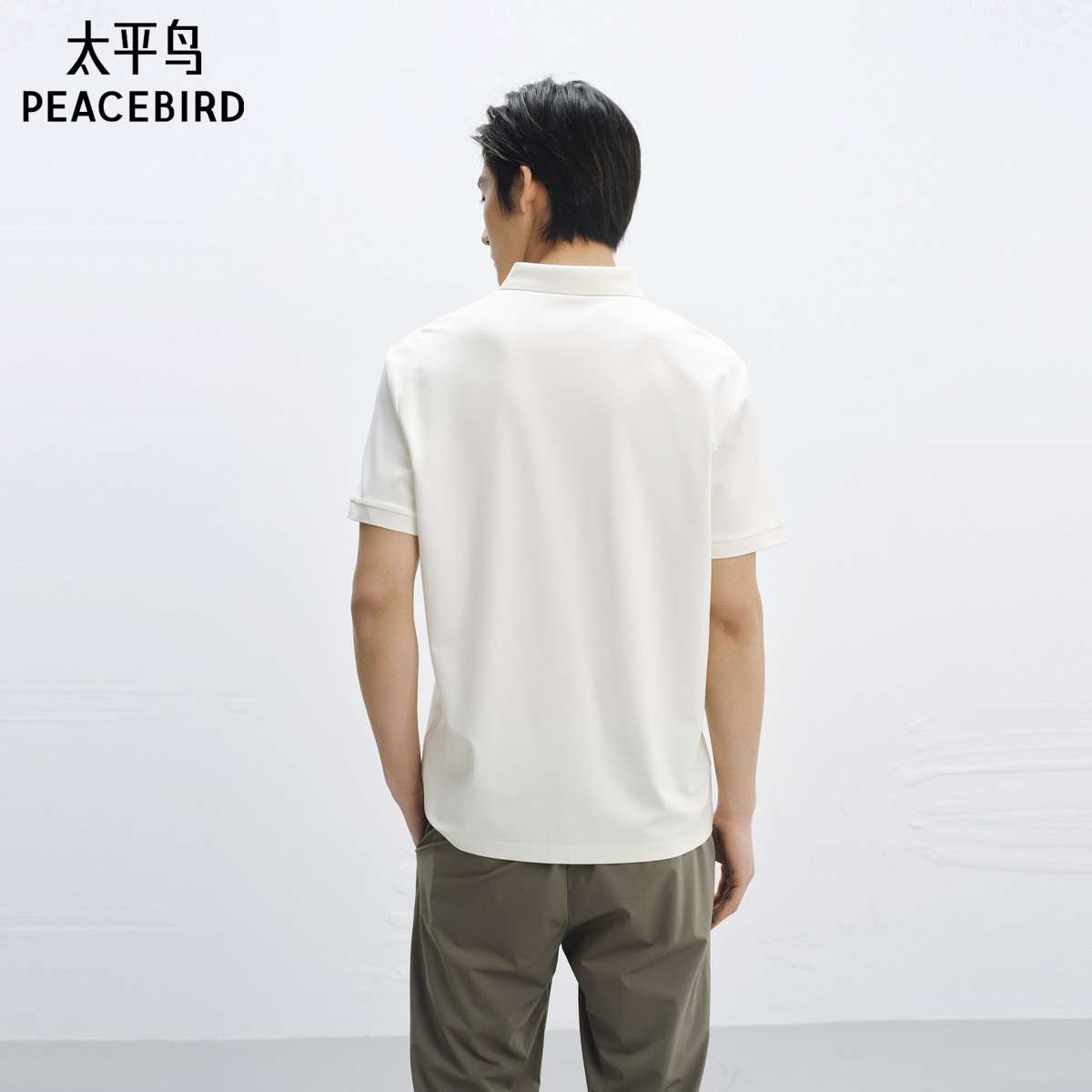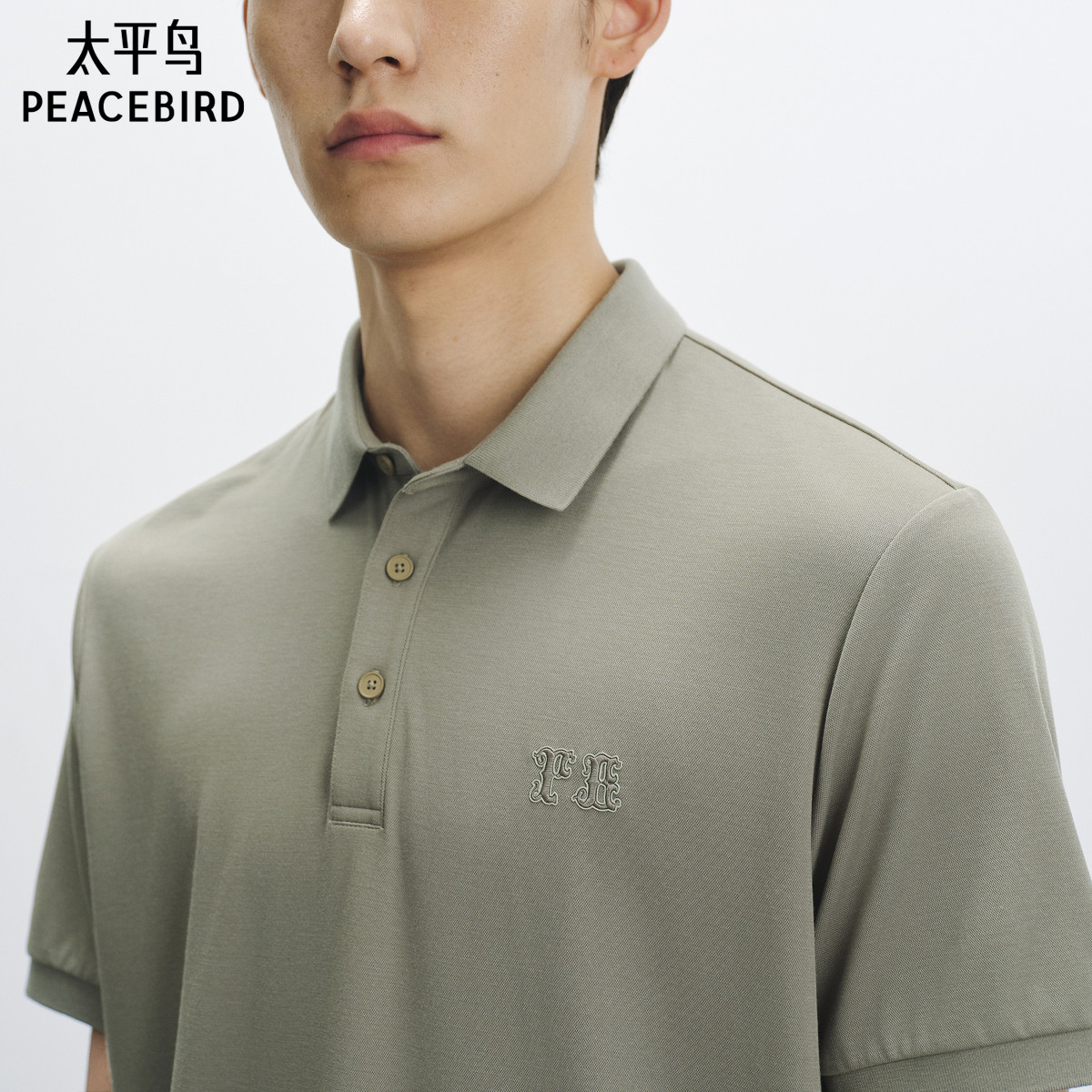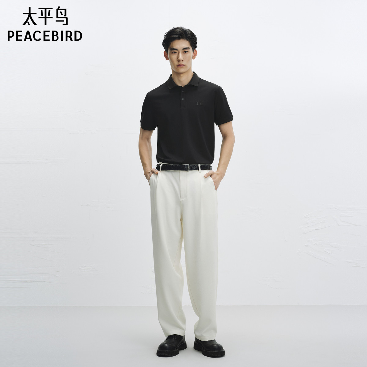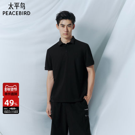 【罗马布】太平鸟男装 80支POLO衫男25年夏新款商务黑色短袖t恤男