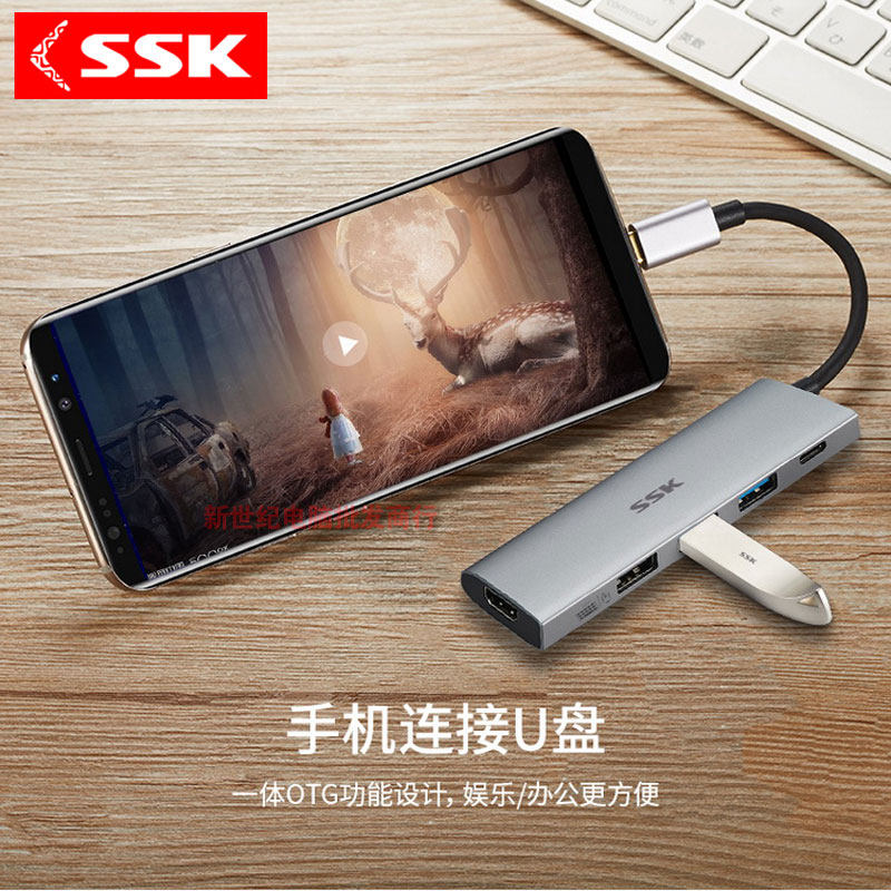 SSK飚王typec拓展坞手机HDMI投屏4K高清pd快充笔记本usb3.0扩展器