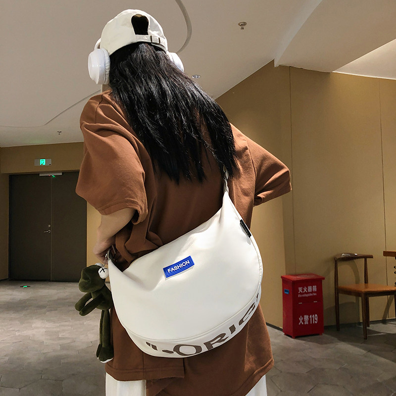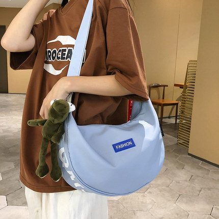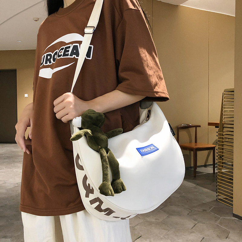 饺子包女帆布包斜挎休闲百搭ins大容量大学生上课补课单肩通勤包