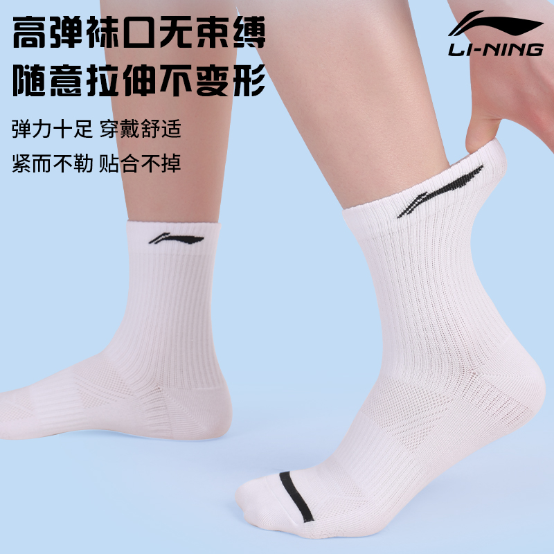 李宁袜子男款运动袜青少年女跑步短袜纯棉抗菌防臭秋冬季加厚中筒