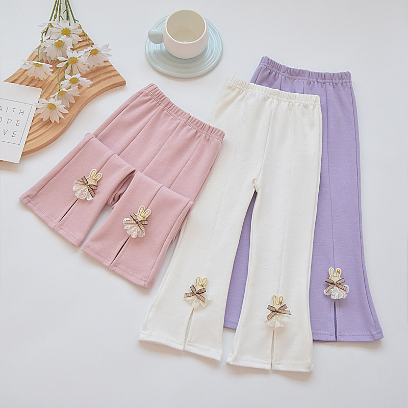 女童喇叭裤春秋季纯棉新款春装小女孩弹力薄款打底裤子儿童微喇裤
