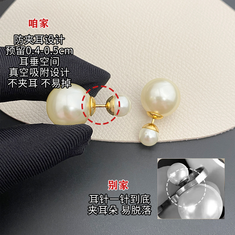 奥米迪奥大小珍珠耳钉女纯银双面戴耳环韩国个性气质前后经典新款