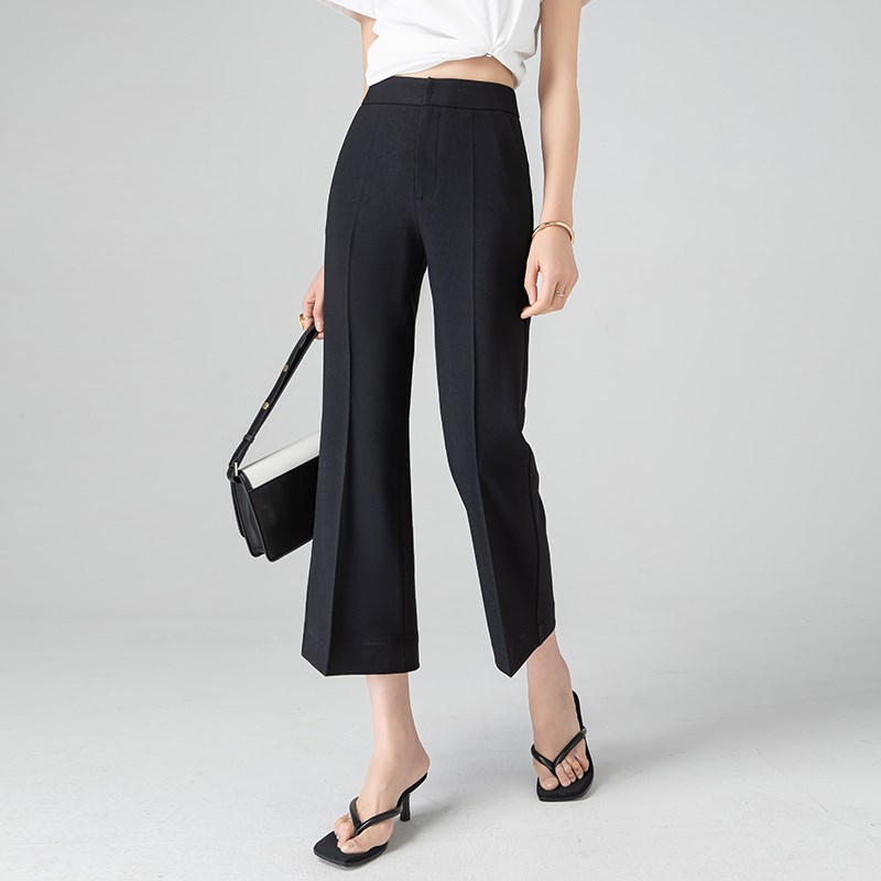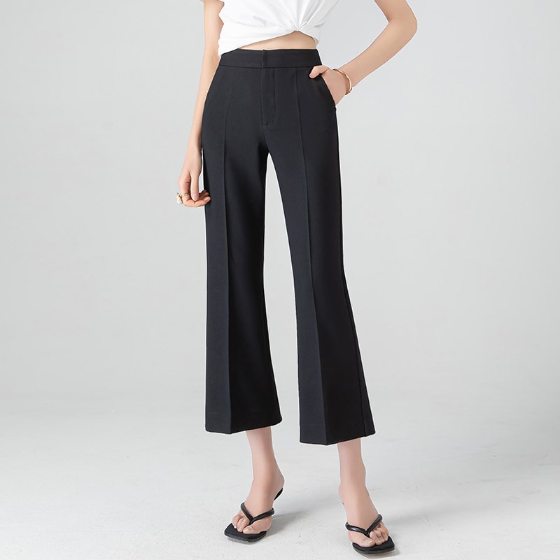 可机洗不沾灰垂感高腰微喇叭裤女2024夏季九分裤小个子显瘦西装裤
