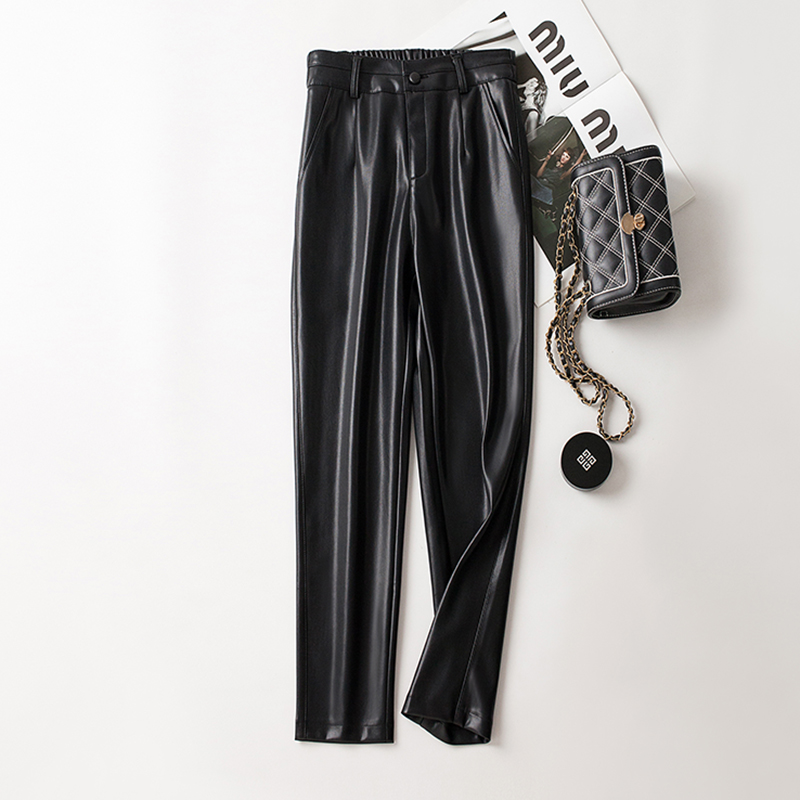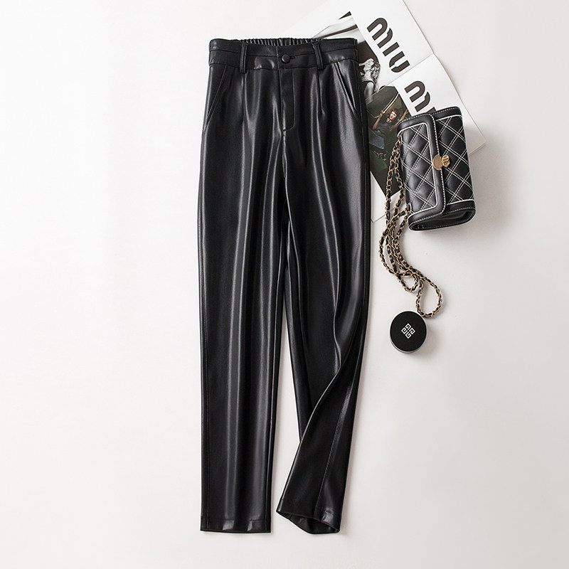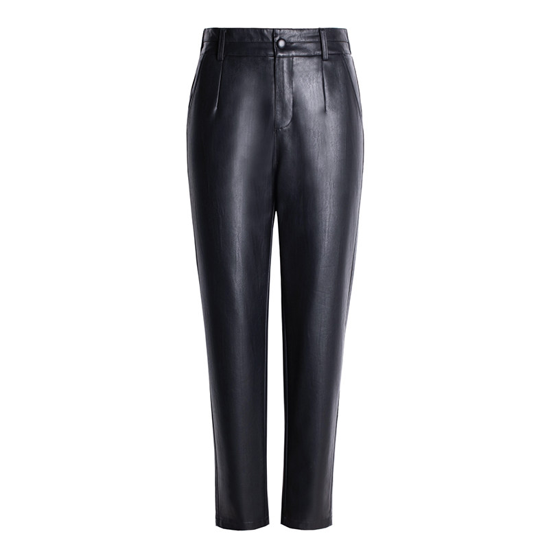 真皮皮裤女小个子2025秋冬新款高腰休闲哈伦裤绵羊皮小脚裤萝卜裤