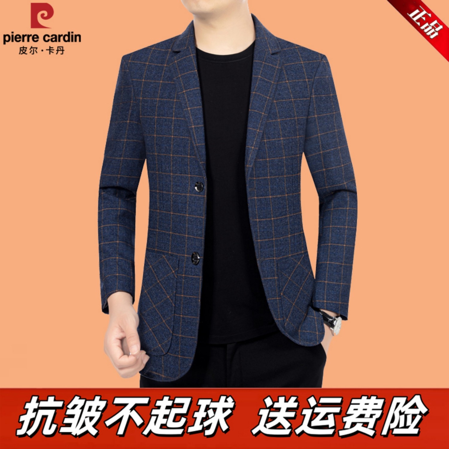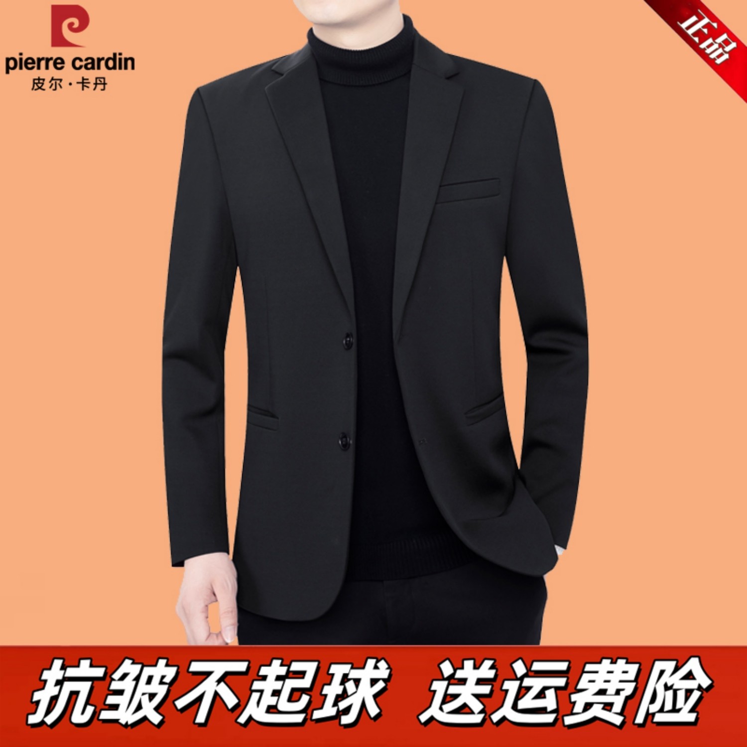 皮尔卡丹西装春秋新款男士中年高级感单西外套修身男西服休闲上衣