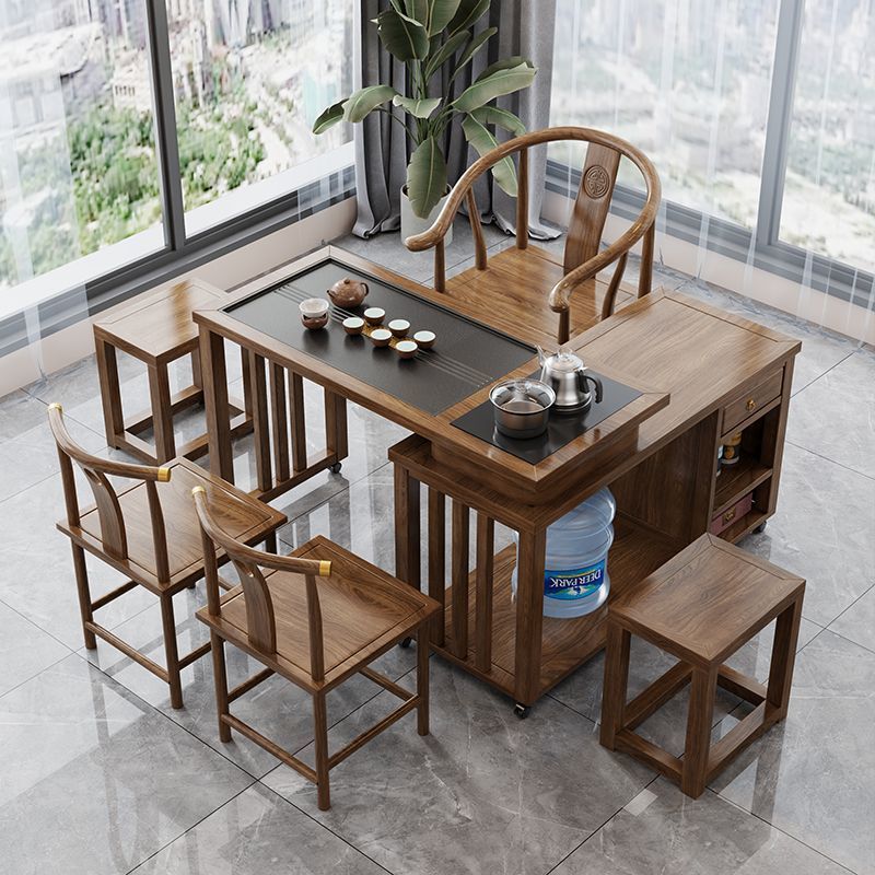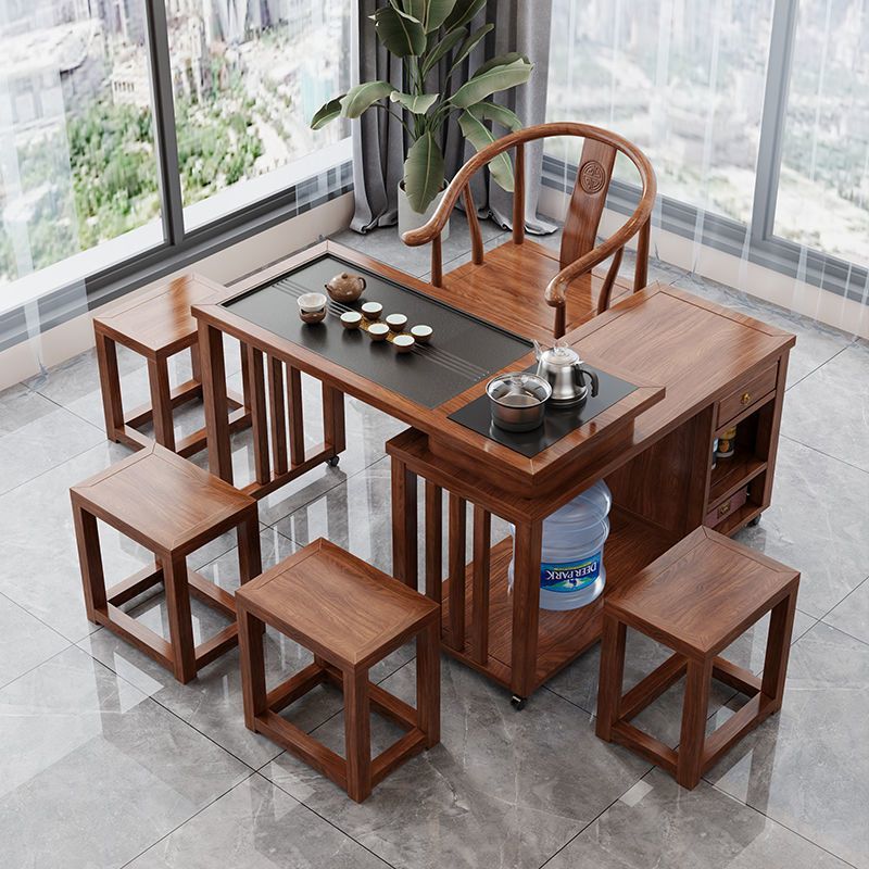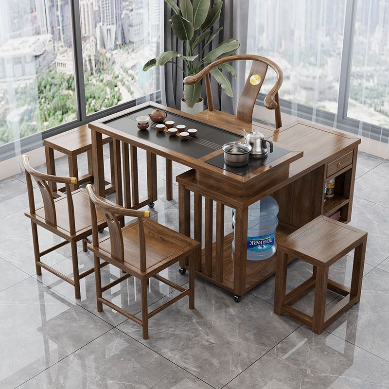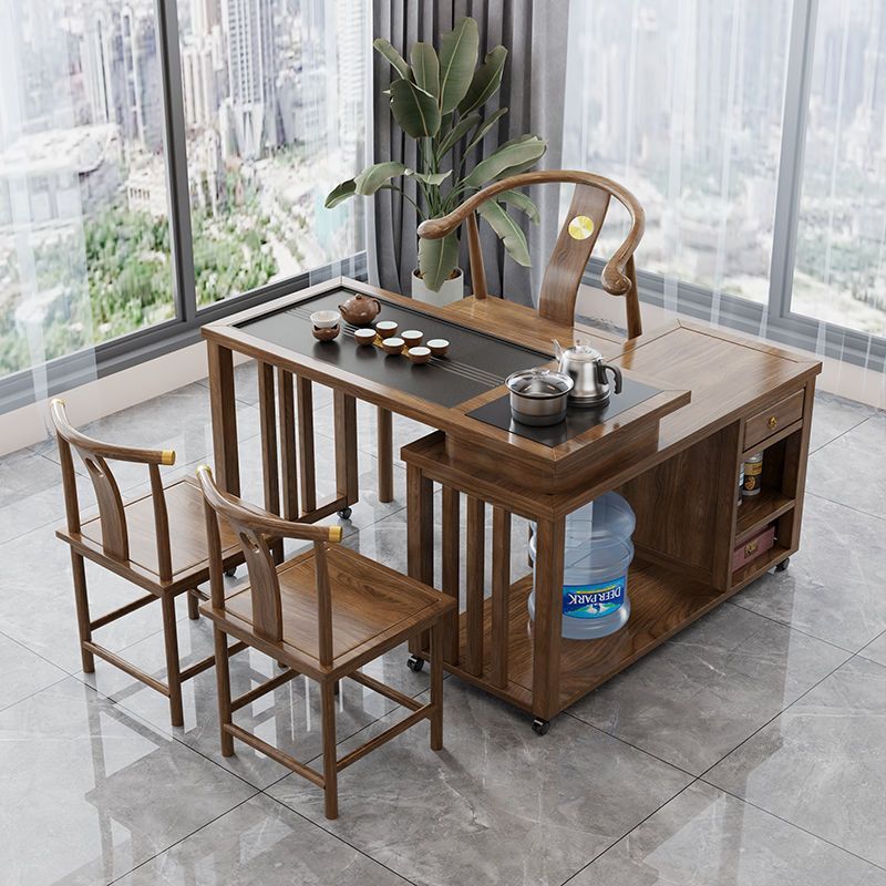 实木阳台旋转茶桌椅组合家用移动茶台喝茶桌小型茶几具烧水壶套装