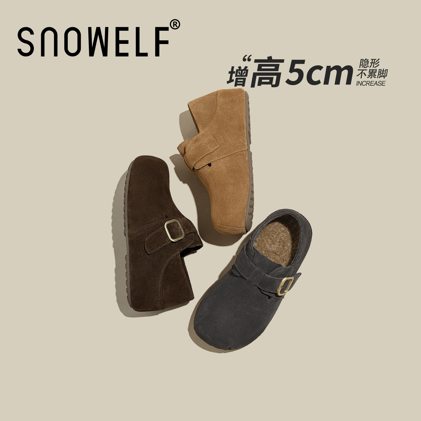 深灰色加绒勃肯鞋厚底棉鞋女2025新款冬季一脚蹬女鞋增高真皮鞋子