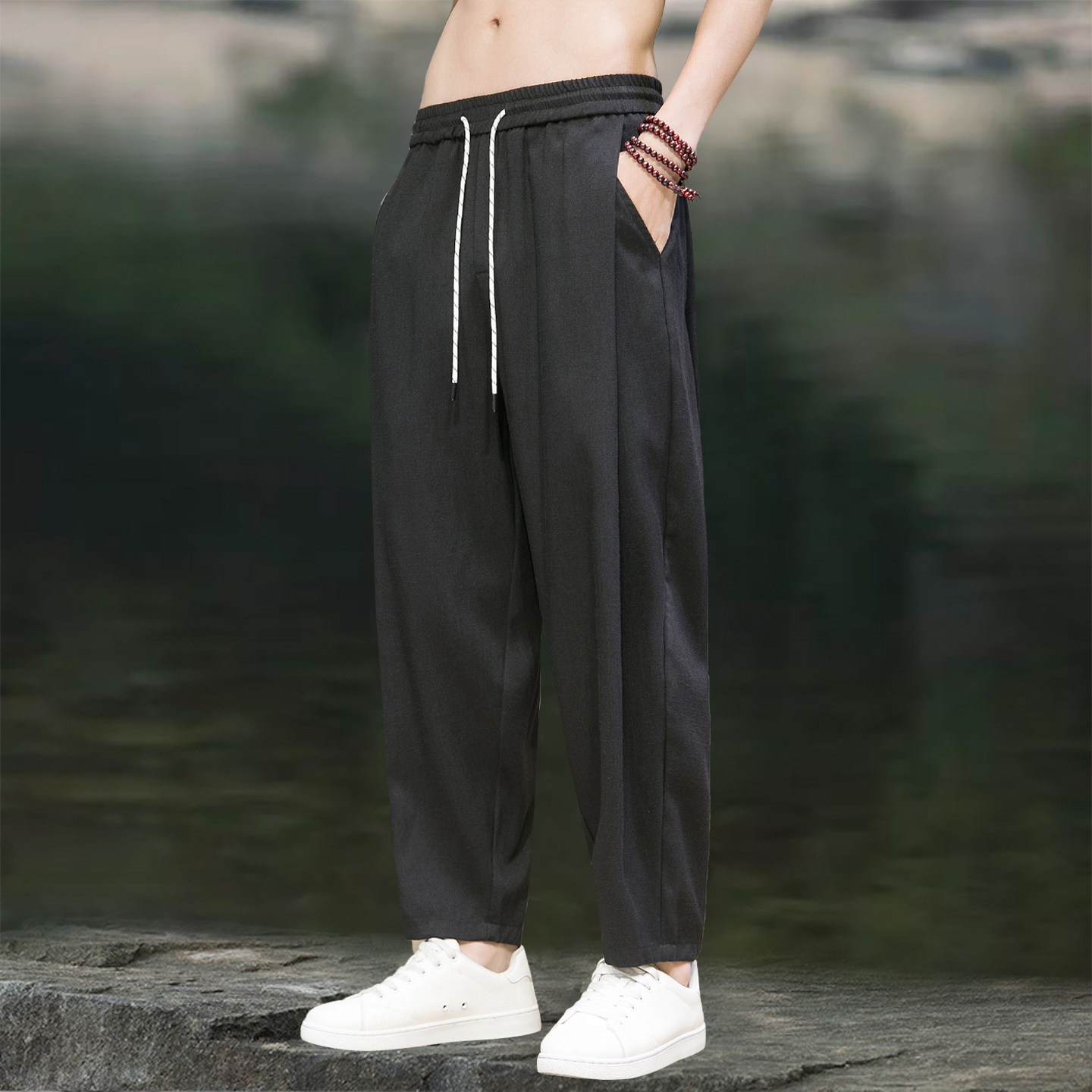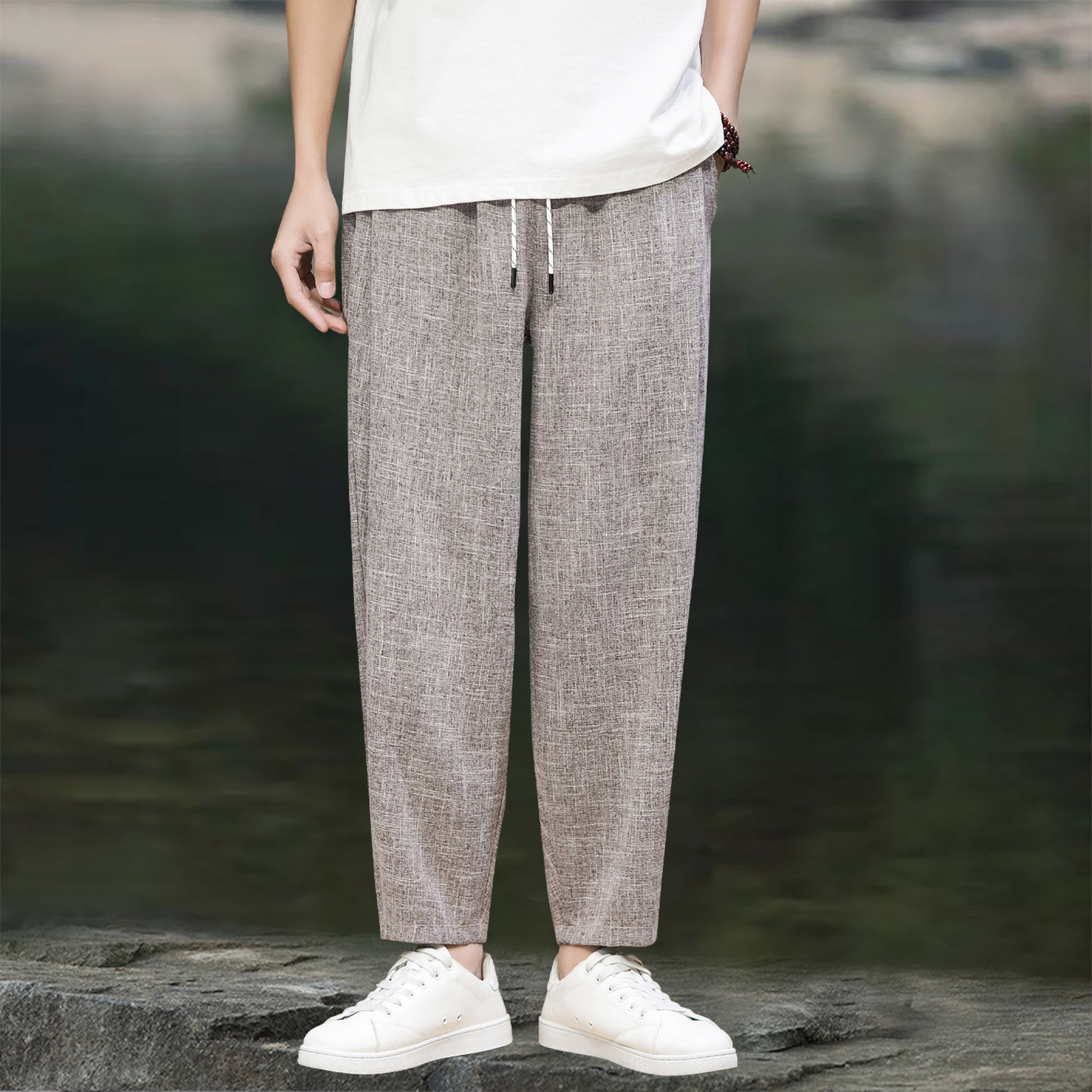 2025新款夏季中国风男士休闲裤棉麻九分裤冰丝薄款裤子宽松大码
